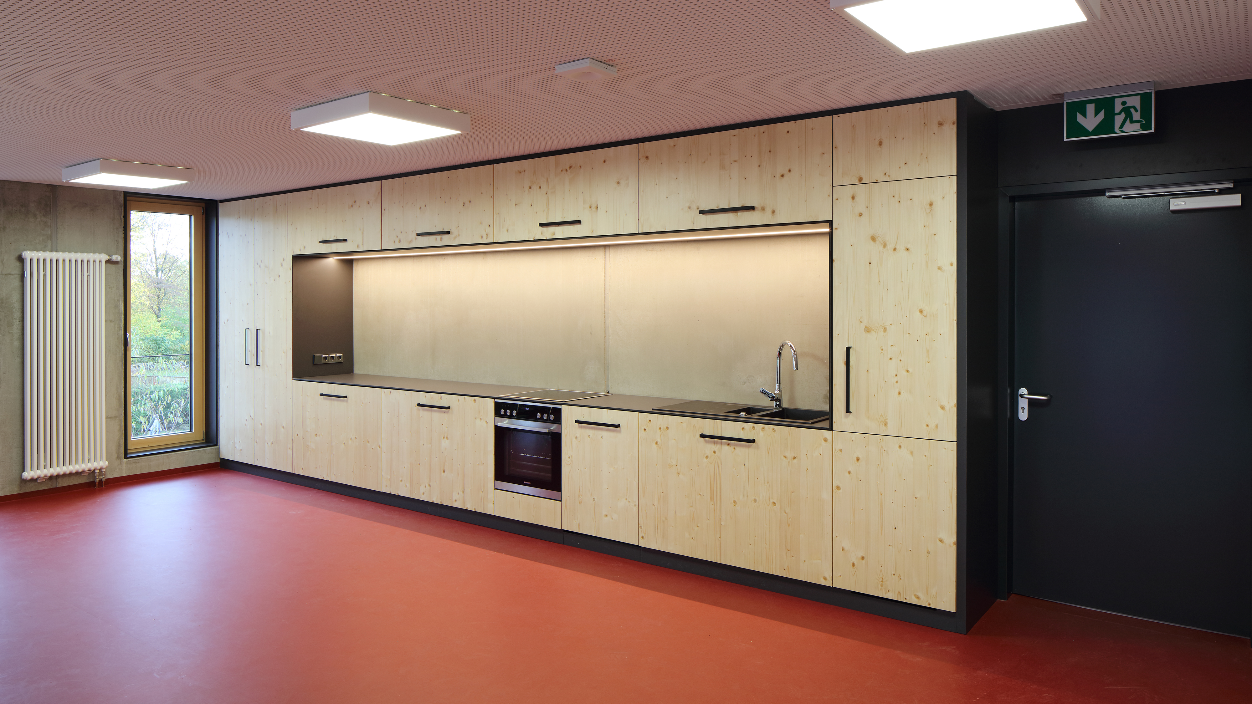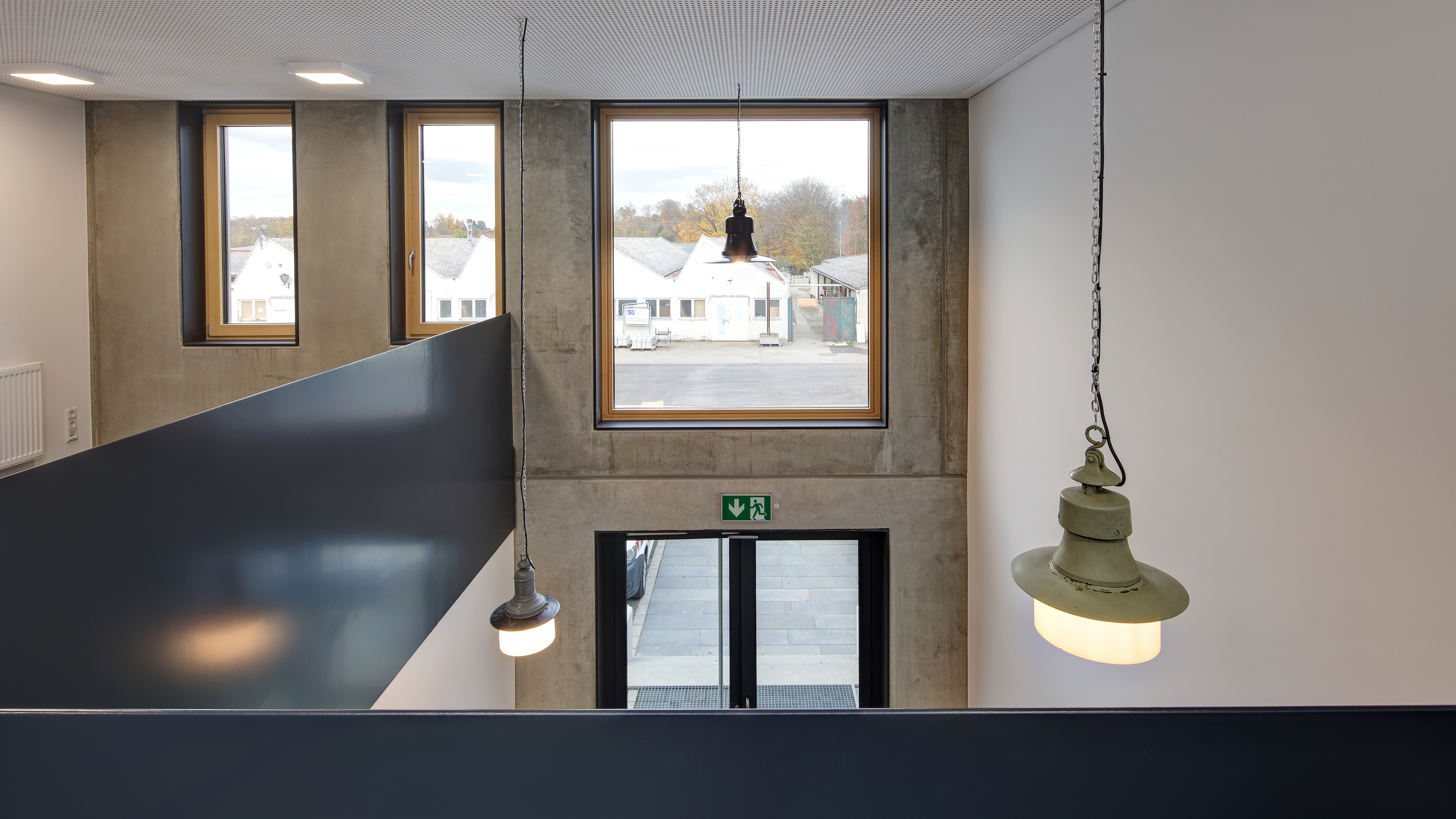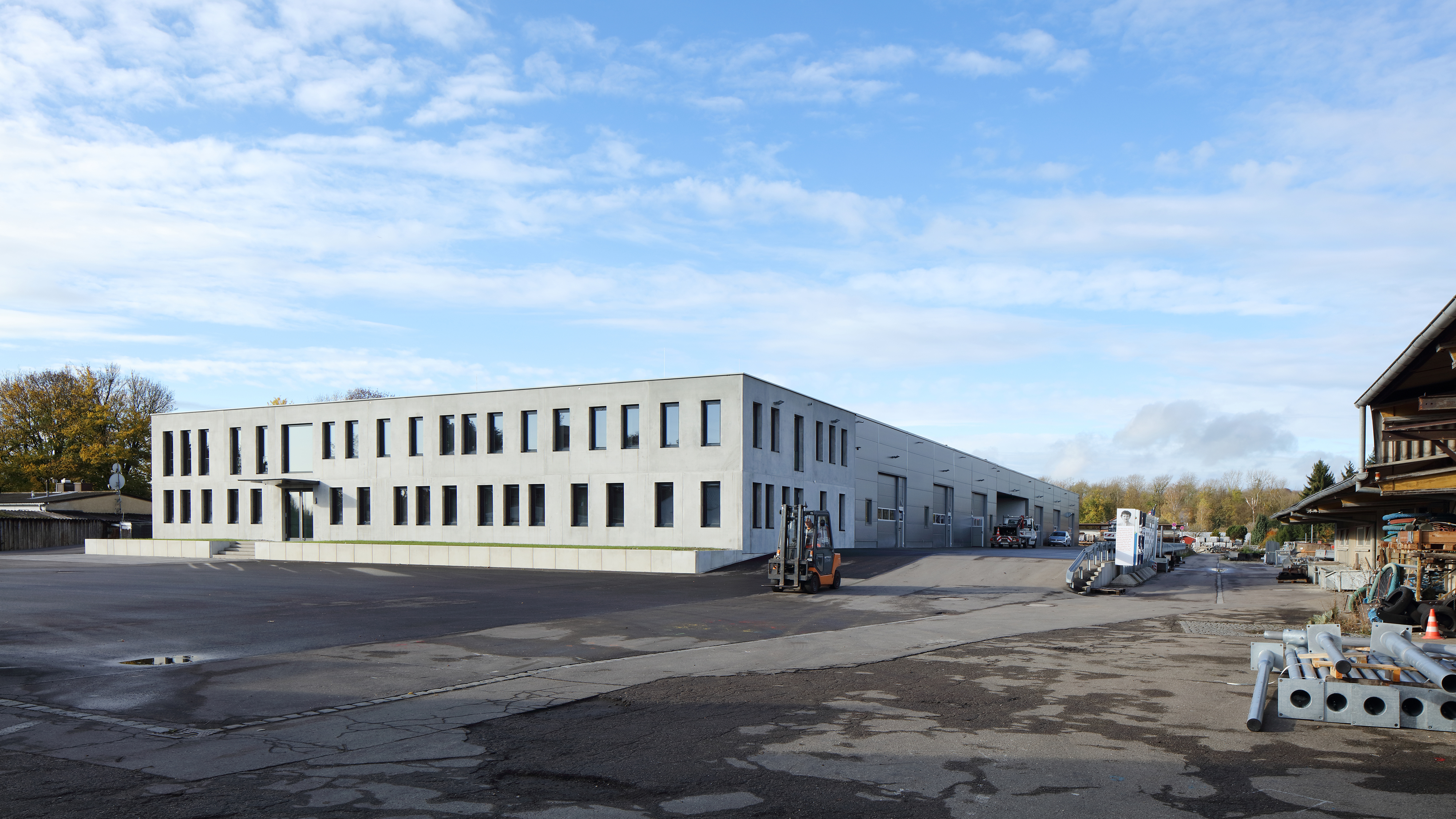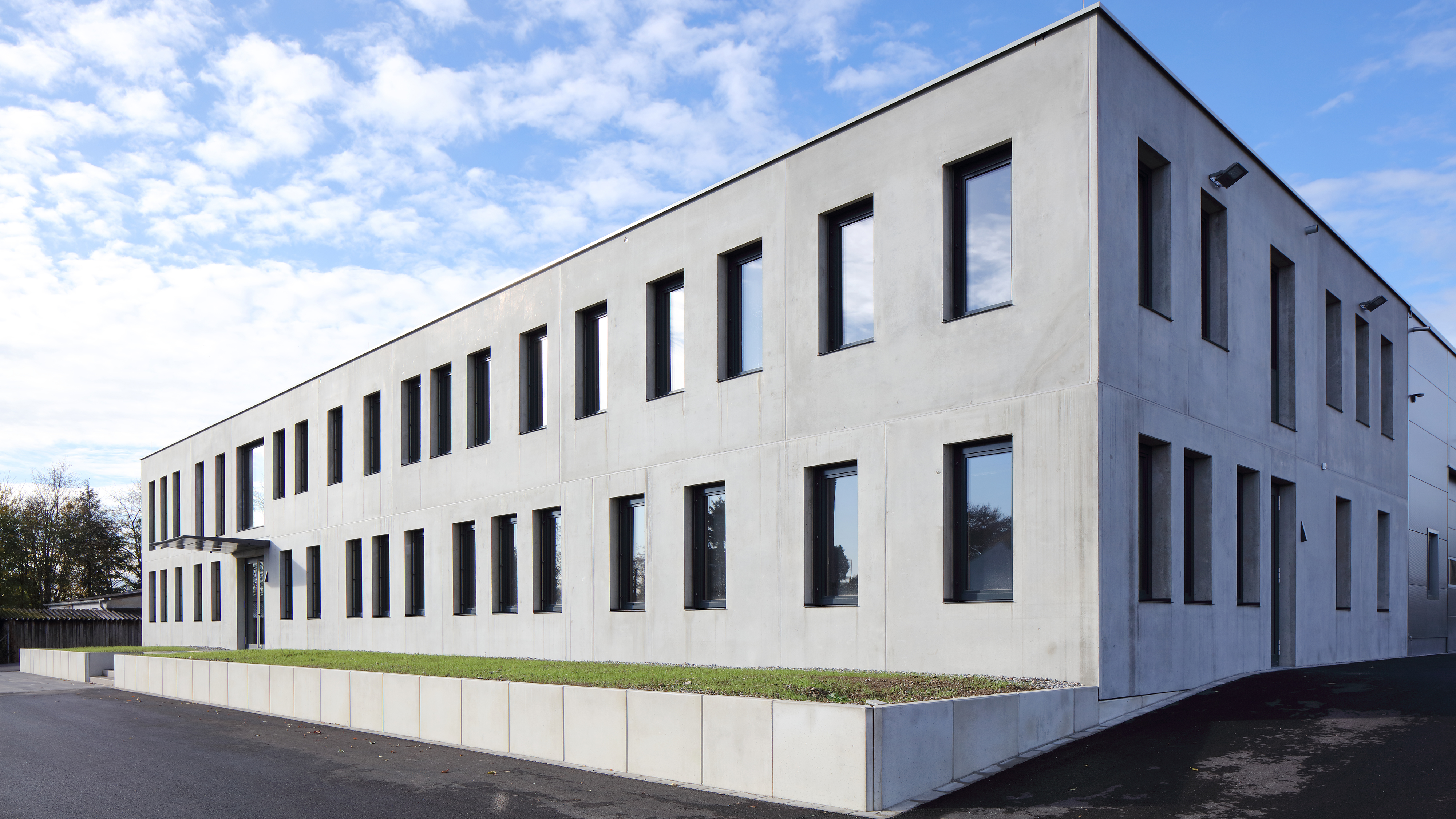das werkstattgebäude mit seinem tragwerk als stahlrahmenkonstruktion wird von einer fassade aus stahlsandwichpaneelen umhüllt. die sandwichpaneele sind waagerecht verlegt und mit einer farbig beschichteten oberfläche versehen. die innenwände zur offenen montagehalle sind aus mauerwerk hlz, einem kerngedämmte poroton-planziegel, hergestellt. die werkstattbüros sind als konfektionierte einbauelemente in stahl/glas-konstruktion umgesetzt.