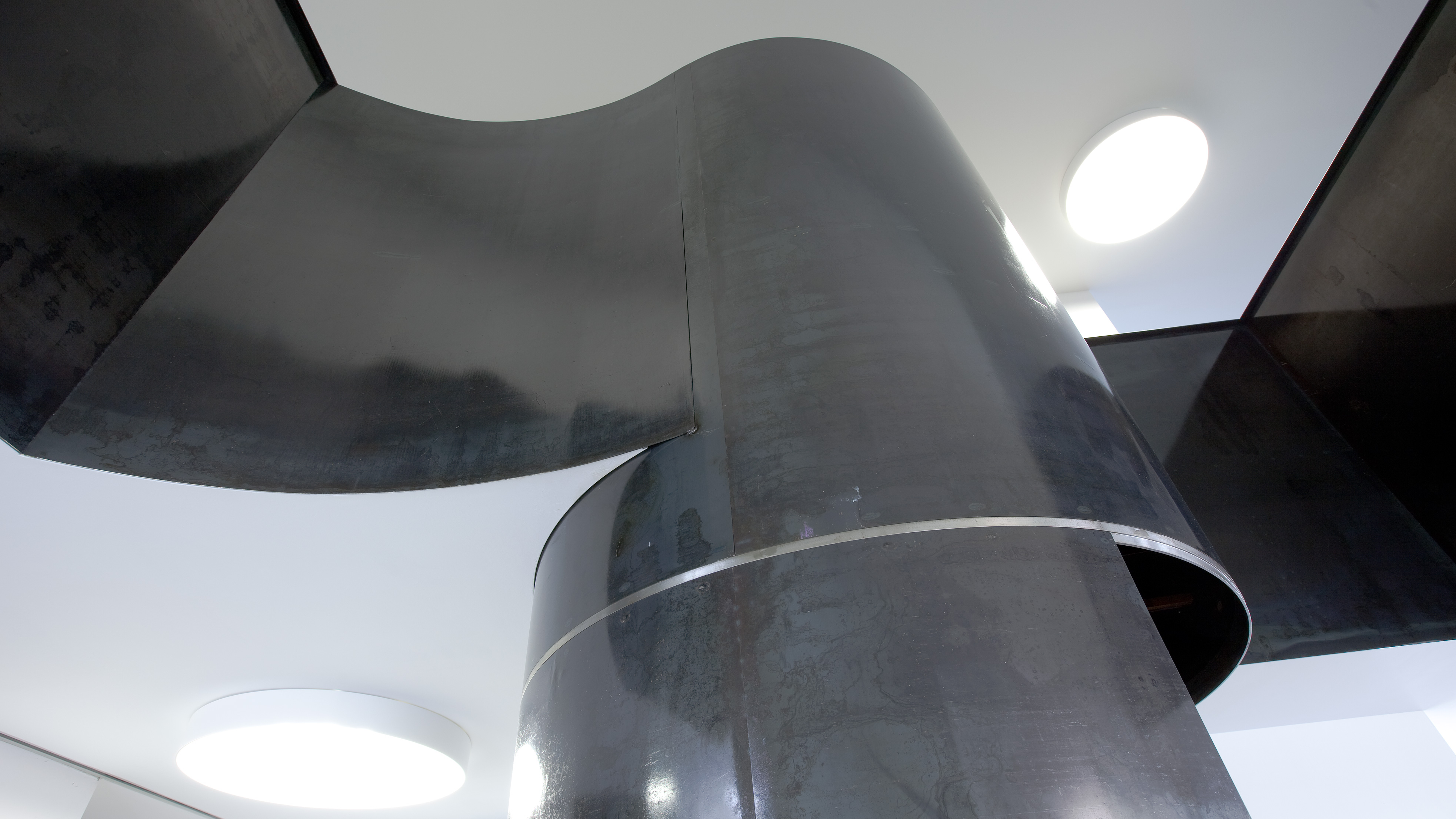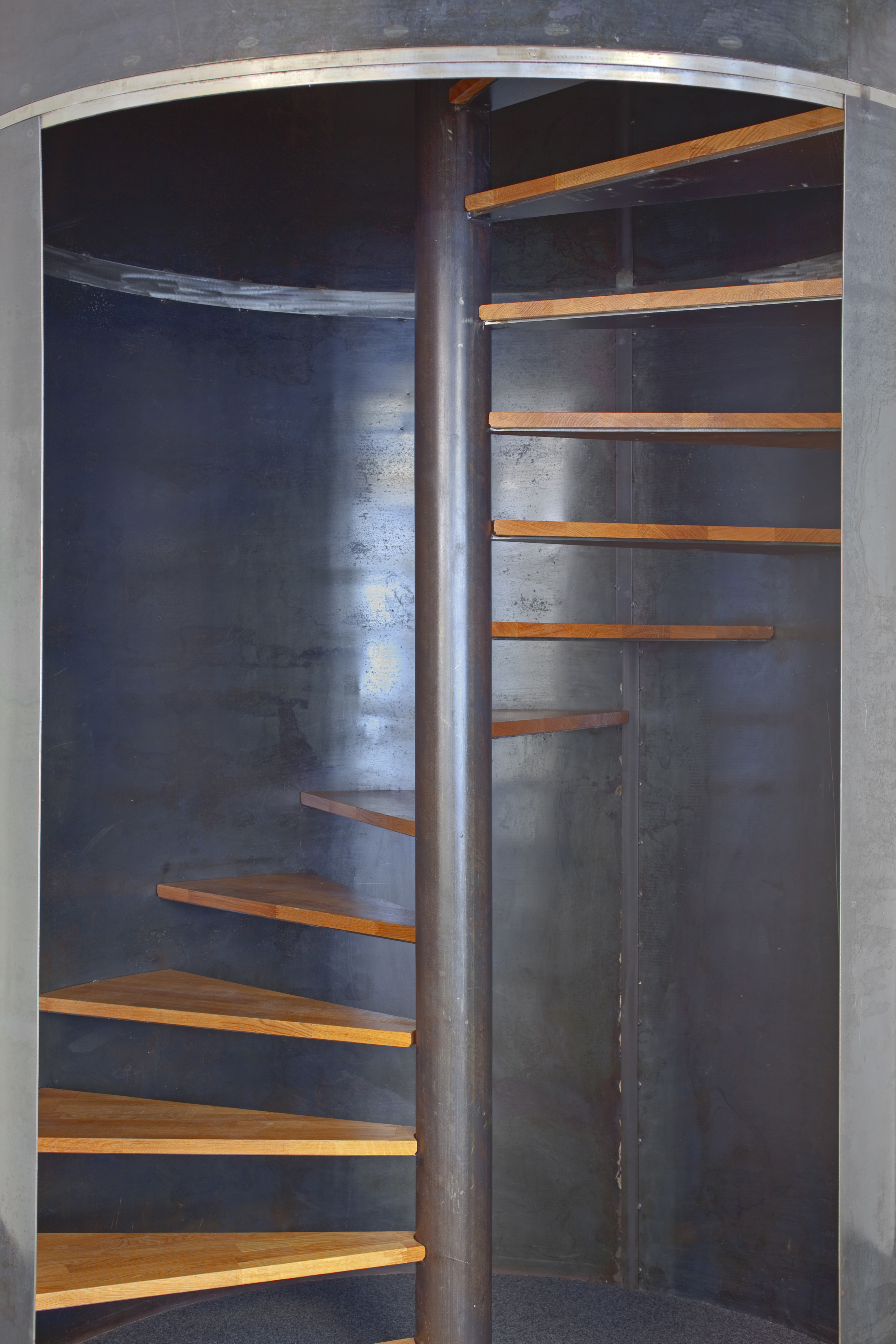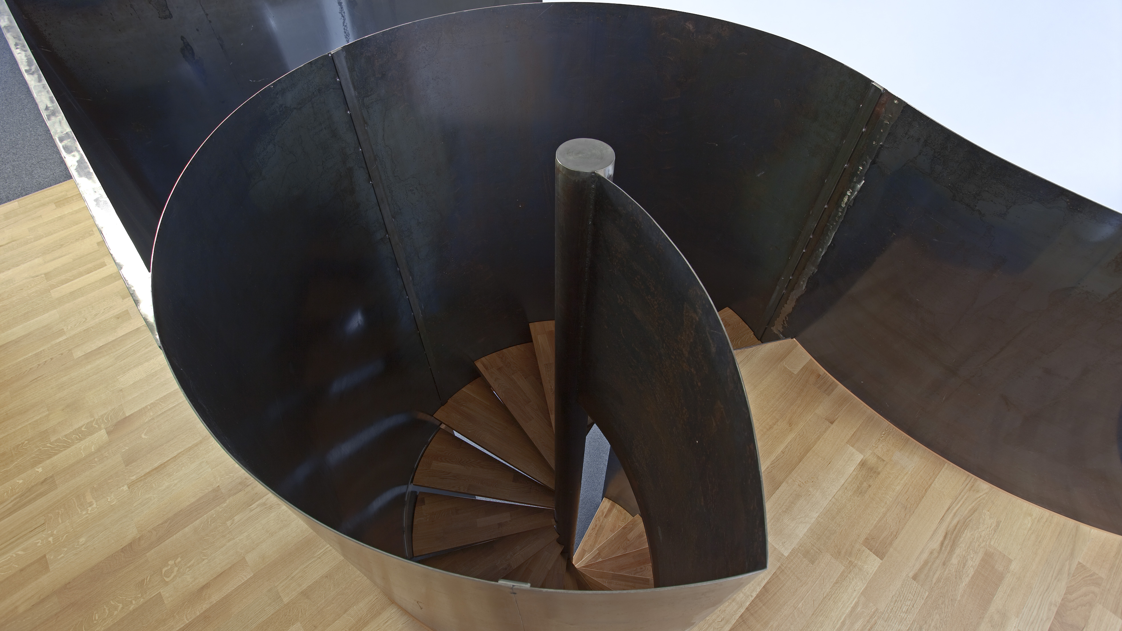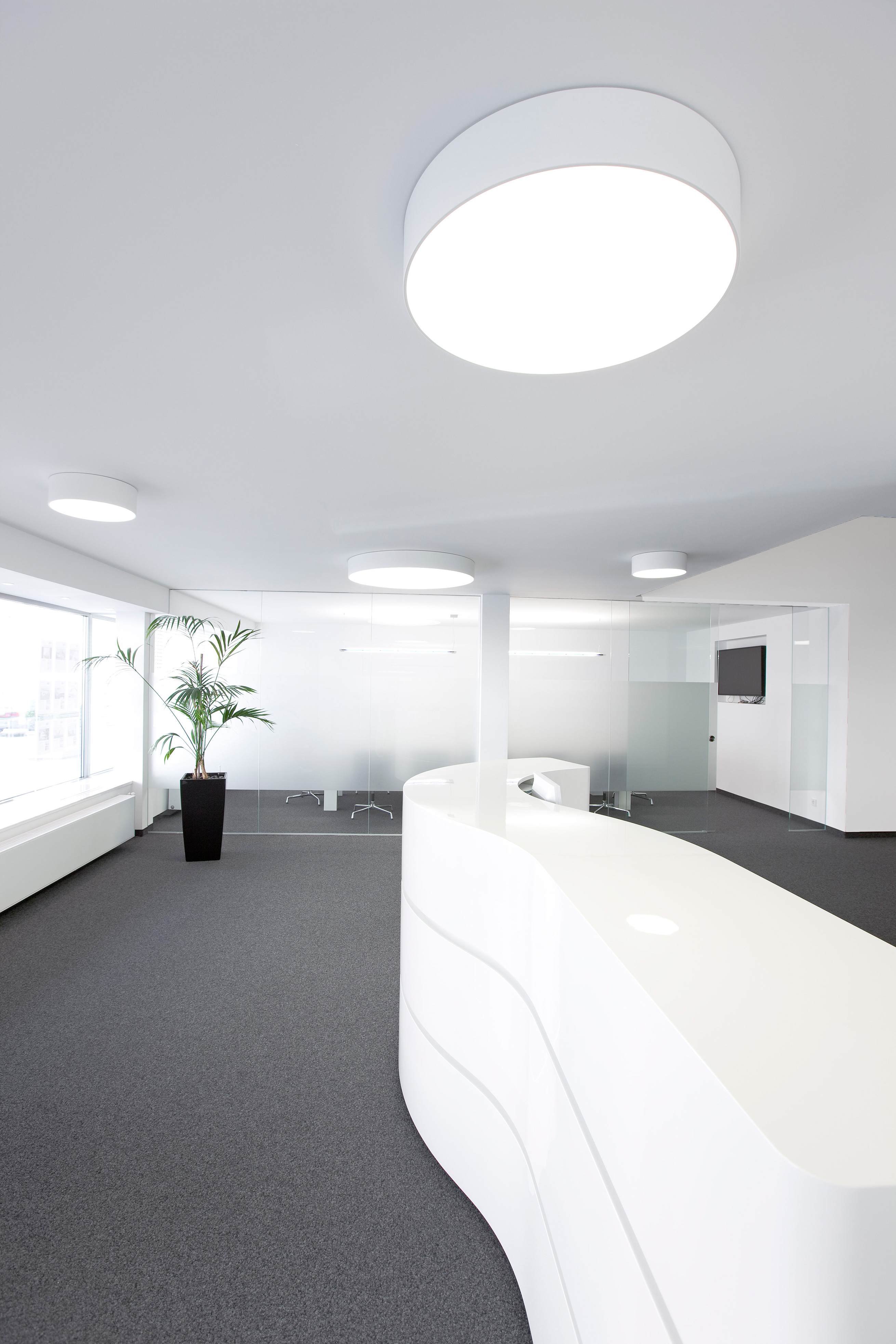 im eckhaus an der kreuzung frauenstraße/schuhhausgasse entstand auf zwei geschossen eine auf wenige elemente reduzierte arbeitswelt. um eine möglichst freie und offene kommunikation zwischen beiden geschossen zu schaffen wurde ein großzügiger, rund 7 meter hoher luftraum integriert. die verbindung der beiden ebenen erfolgt über eine spindeltreppe, die von einer tonne aus geöltem schwarzblech gefasst wird. die freiform stellt das zenrale element der arbeitswelt dar. die profillosen glastrennelemente in den büros sorgen für lichtdurchflutung und die notwendige transparenz. die maßgefertigten, schlichten und hochweiß glänzenden möbel fügen sich mit ihren klaren strukturen wie selbstverständlich in den bestand. kontraste entstehen durch die wirkung großer flächen; die transparenz und die weißgestrichenen wände stehen im deutlichen kontrast zu der in anthrazit gehaltenen treppe, dem bodenbelag als nadelfilz und dem mobilen raumteiler, der als schwarzlackierte, 2,60 x 2,40 meter große glasscheibe, gestaltet wurde.