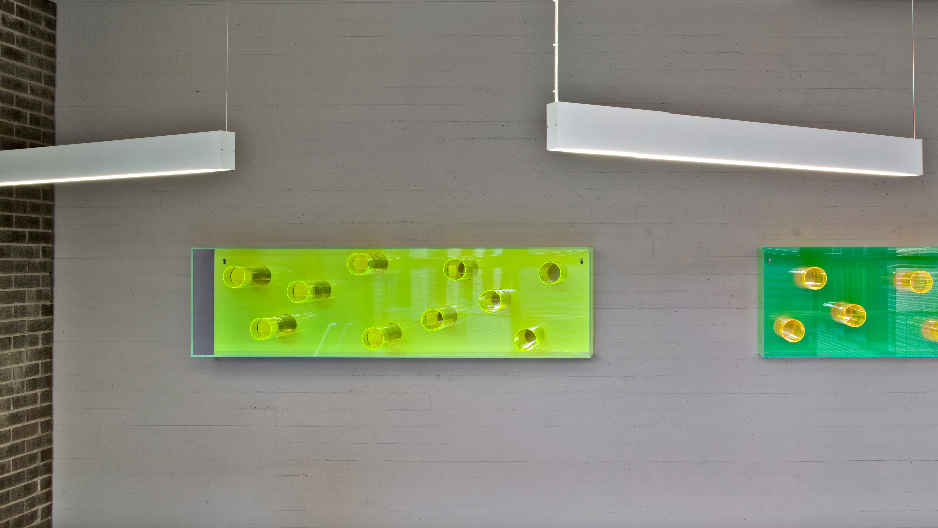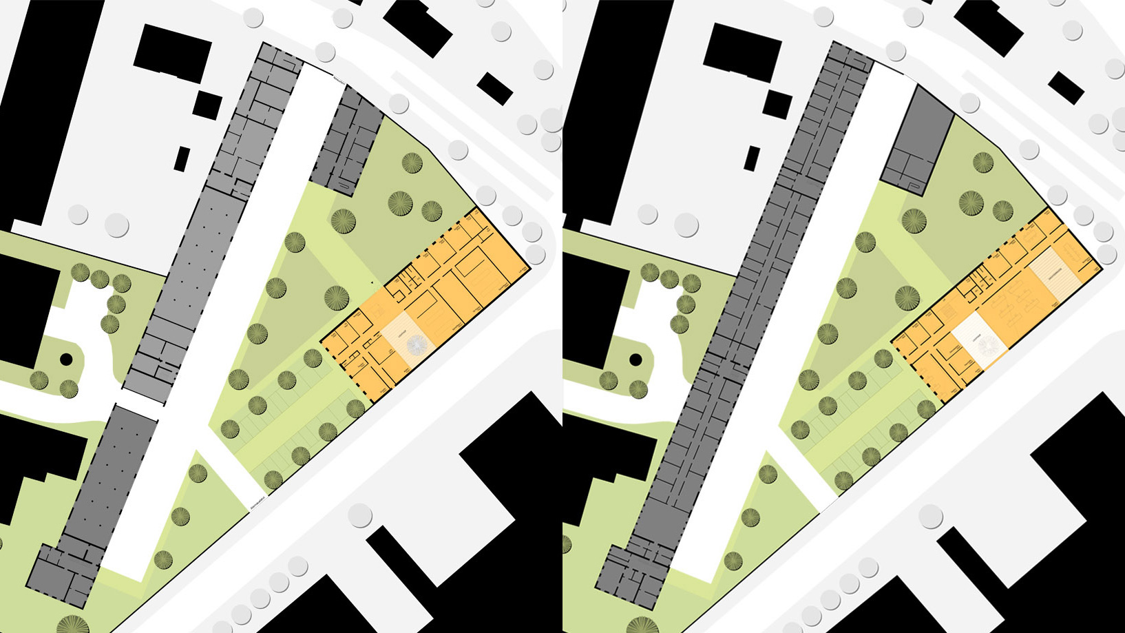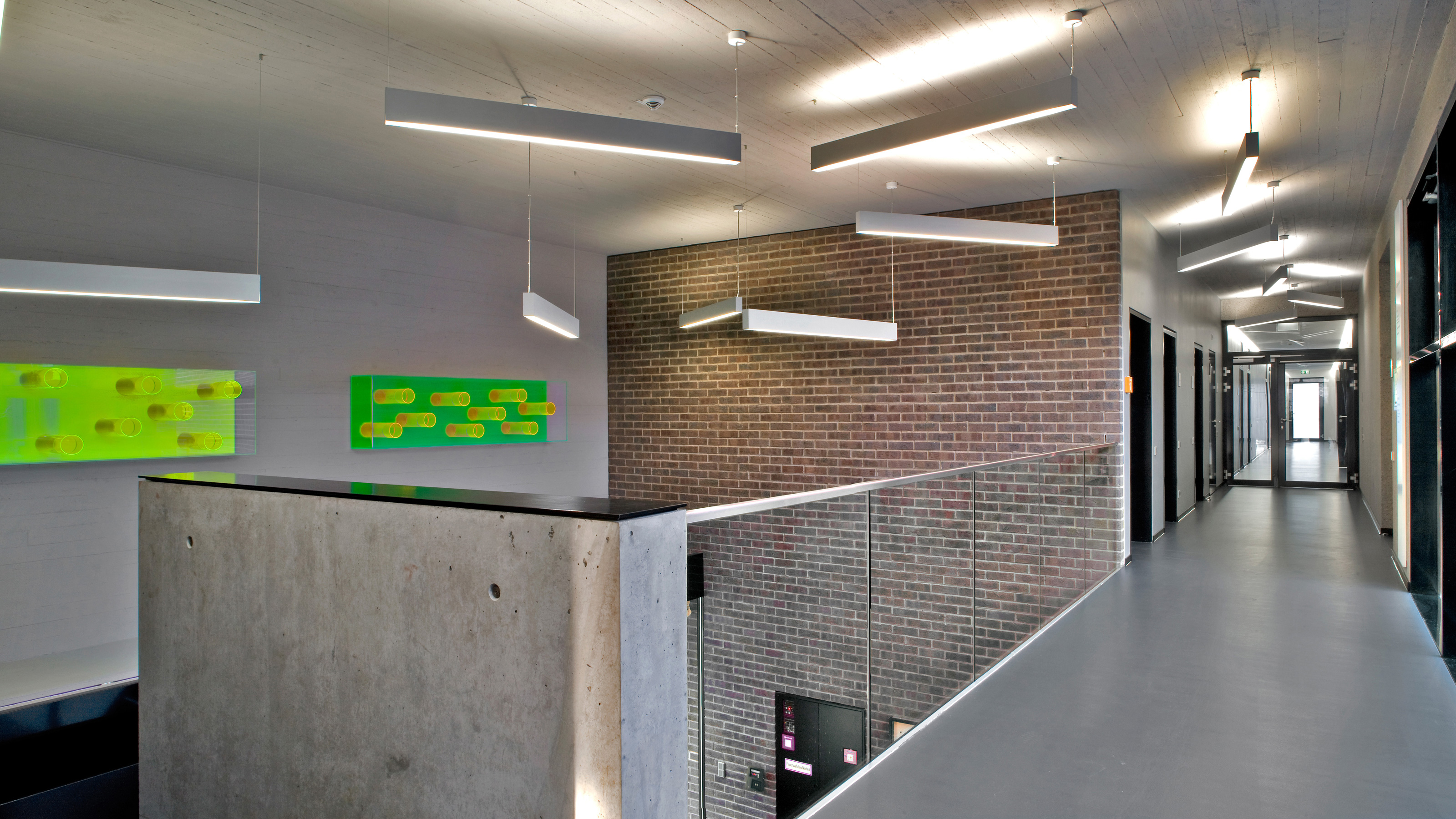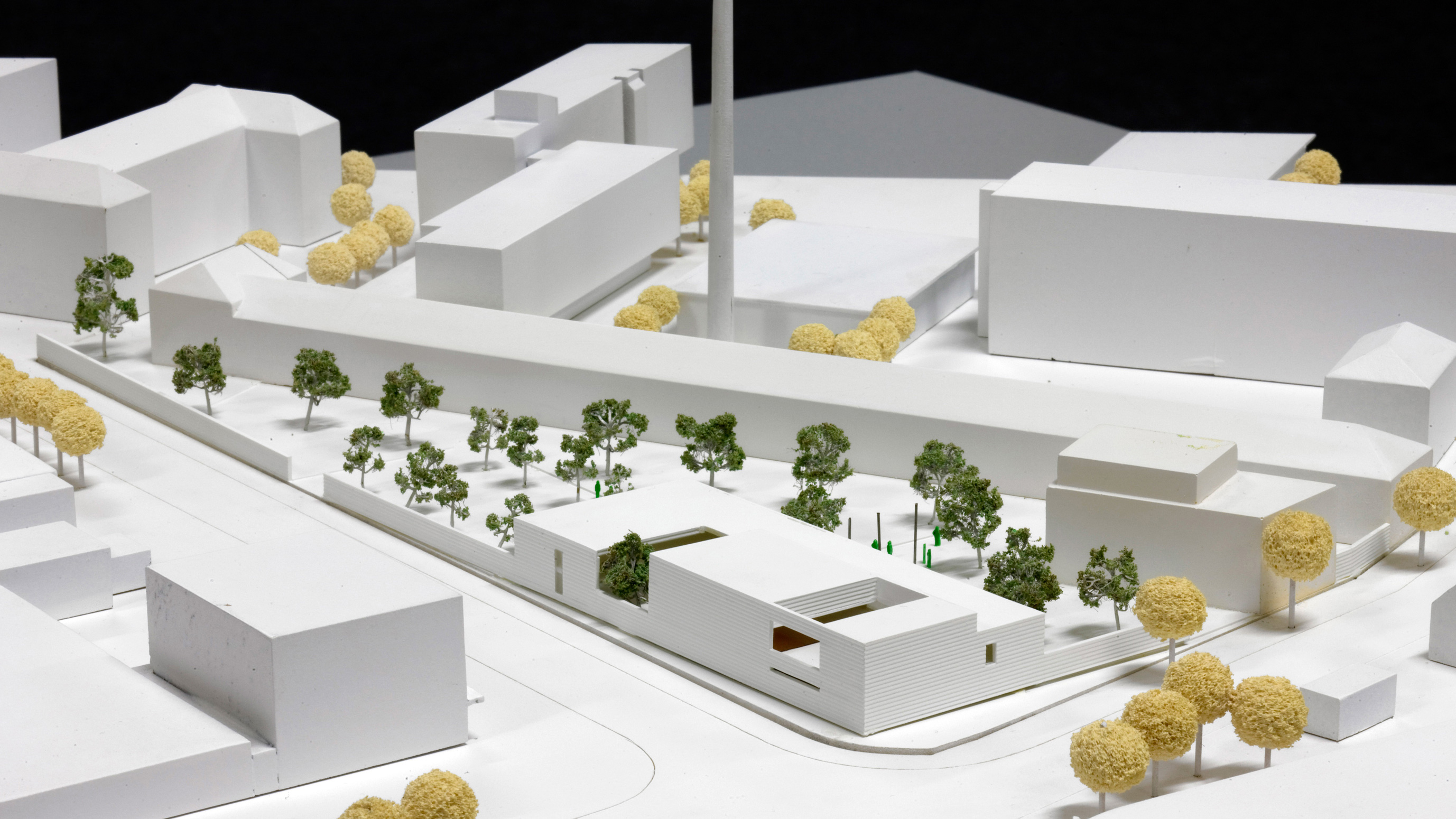 das grundstück des führungs- und lagezentrum der saarländischen vollzugspolizei, liegt an der aufgelockerten bebauung am rande der innenstadt. der zweigeschossige neubau akzentuiert diese nahtstelle durch seine einfache kubatur, die an der leitzentrale erhöht und nachvollziehbar ausgeformt wurde. das gebäude akzentuiert durch die größeren raumhöhen von konferenzraum und großraumbüro die städtebaulich prägnante ecke halbergstraße /am kieselhumes, nimmt das motiv der giebelständigkeit der gebäude 10 und 10a an der halbergstraße auf und bildet einen räumlichen abschluß für den südwestlich angrenzenden vorbereich des benachbarten gewerbebaus. die beiden nach innen wirkenden raumelemente innenhof und dachterrasse geben dem inneren raumgefüge eine wohltuende gliederung. sowohl der eingangsbereich als auch der raum für die einsatzsachbearbeitung profitieren hervorragend von derartigen raumelementen. die tragende konstruktion des zweigeschossigen massivbaus wurde in ortbetonbauweise erstellt und mit leichten trennwänden ergänzt. um die zugehörigkeit des neubaus zur einfriedung des kasernenareals als auch zu den bestehenden gebäuden zu betonen, wurde eine fassade in sichtziegelmauerwerk gewählt. aus sicherheitsgründen wurden zum öffentlichen raum möglichst wenig öffnungen vorgesehen und sämtliche diensträume zum gesicherten bereich orientiert.