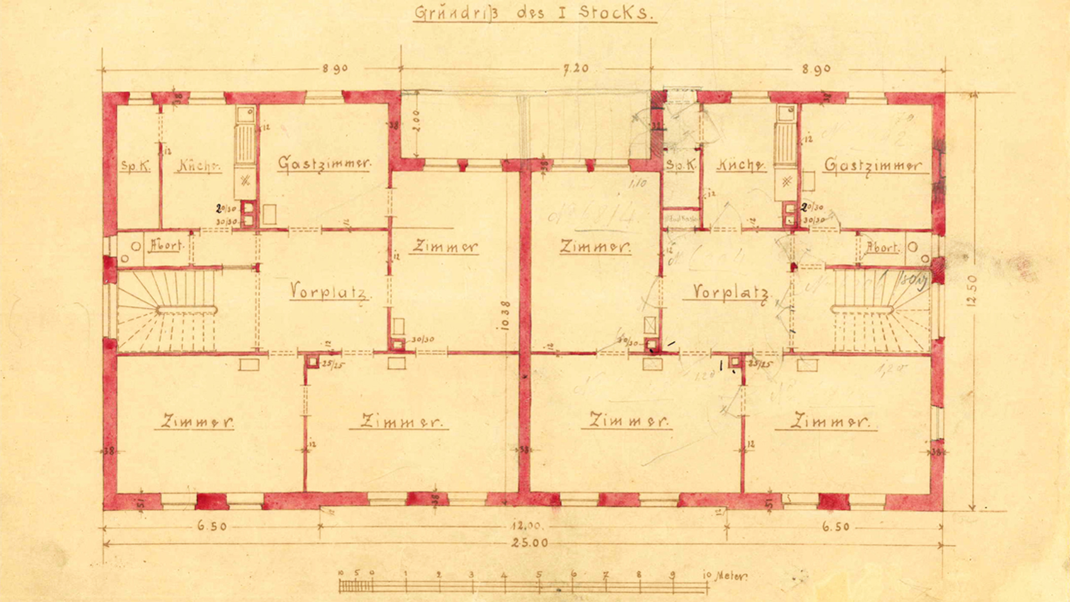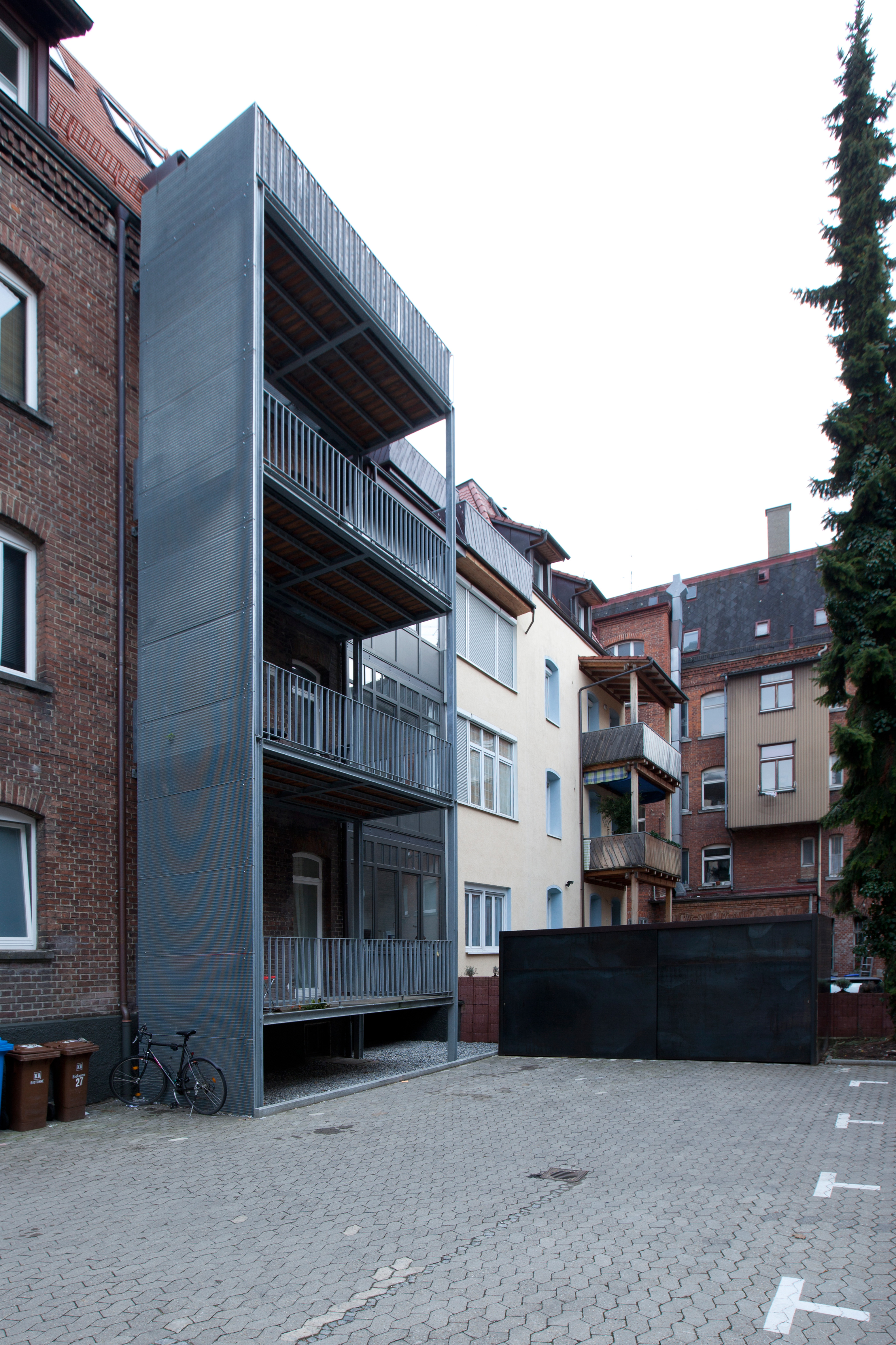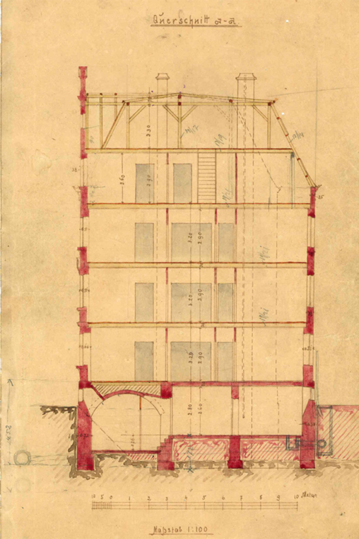 der gebäudekomplex aus dem jahre 1906 liegt in einer ehemaligen gründerzeitlichen prachtsraße und besteht aus zwei häusern mit jeweils 4 wohneinheiten und einem innenhof.