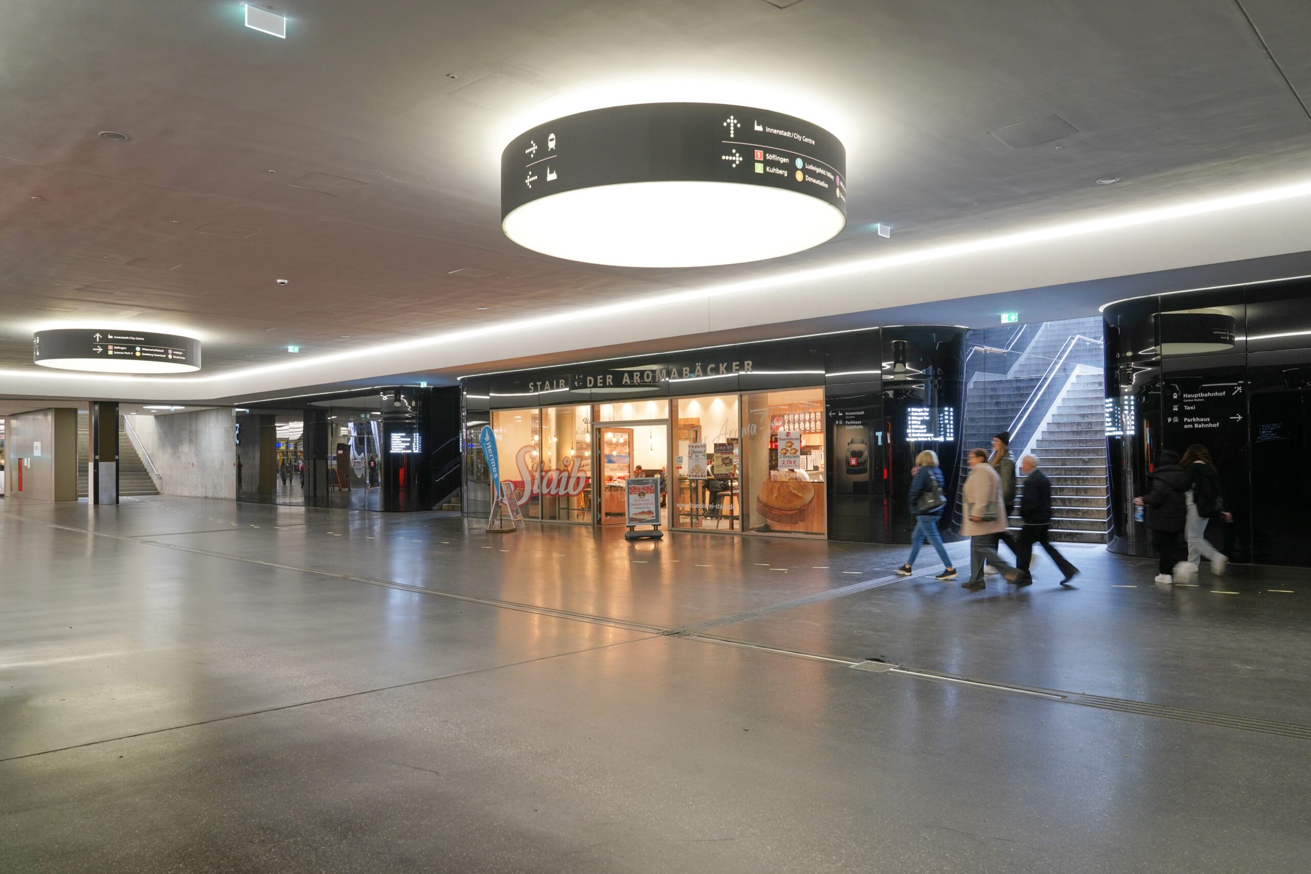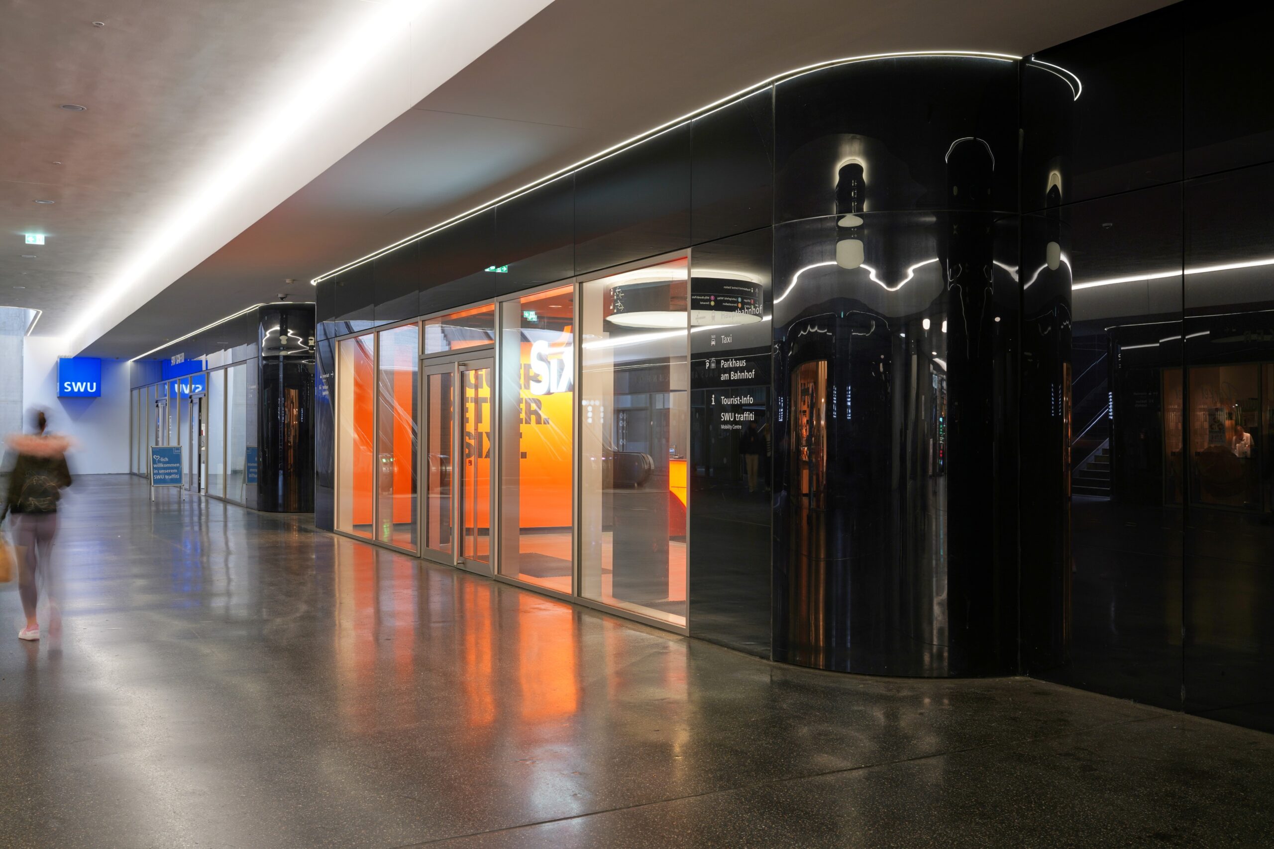 es entsteht ein neuer ort, voll bewegung, orientierung und frequenz. ein attraktiver ort mit vielfältigen beziehungen und zentraler verteilfunktion. ein sicherer ort mit aufenthaltsqualität. ein ort der mobilität und der nahversorgung. ein orientierbarer ort mit informationen zu abfahrtszeiten von bus und bahn.