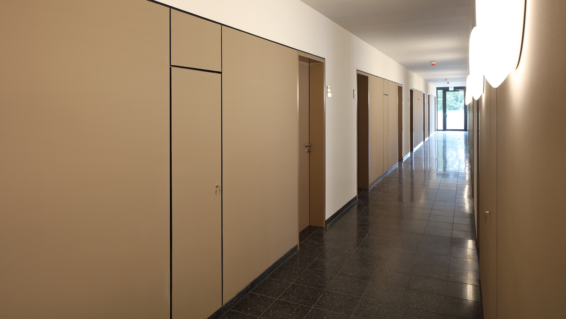 die bearbeitung ist auf basis des amtsseitig vorgegebenen entwurfes ab der werkplanung in den leistungsphasen 5-8 erfolgt. auf dem grundstück entstehen zwei unterkunftsgebäude mit jeweils 72 zimmern und gemeinschaftlich genutzten funktionsbereichen.