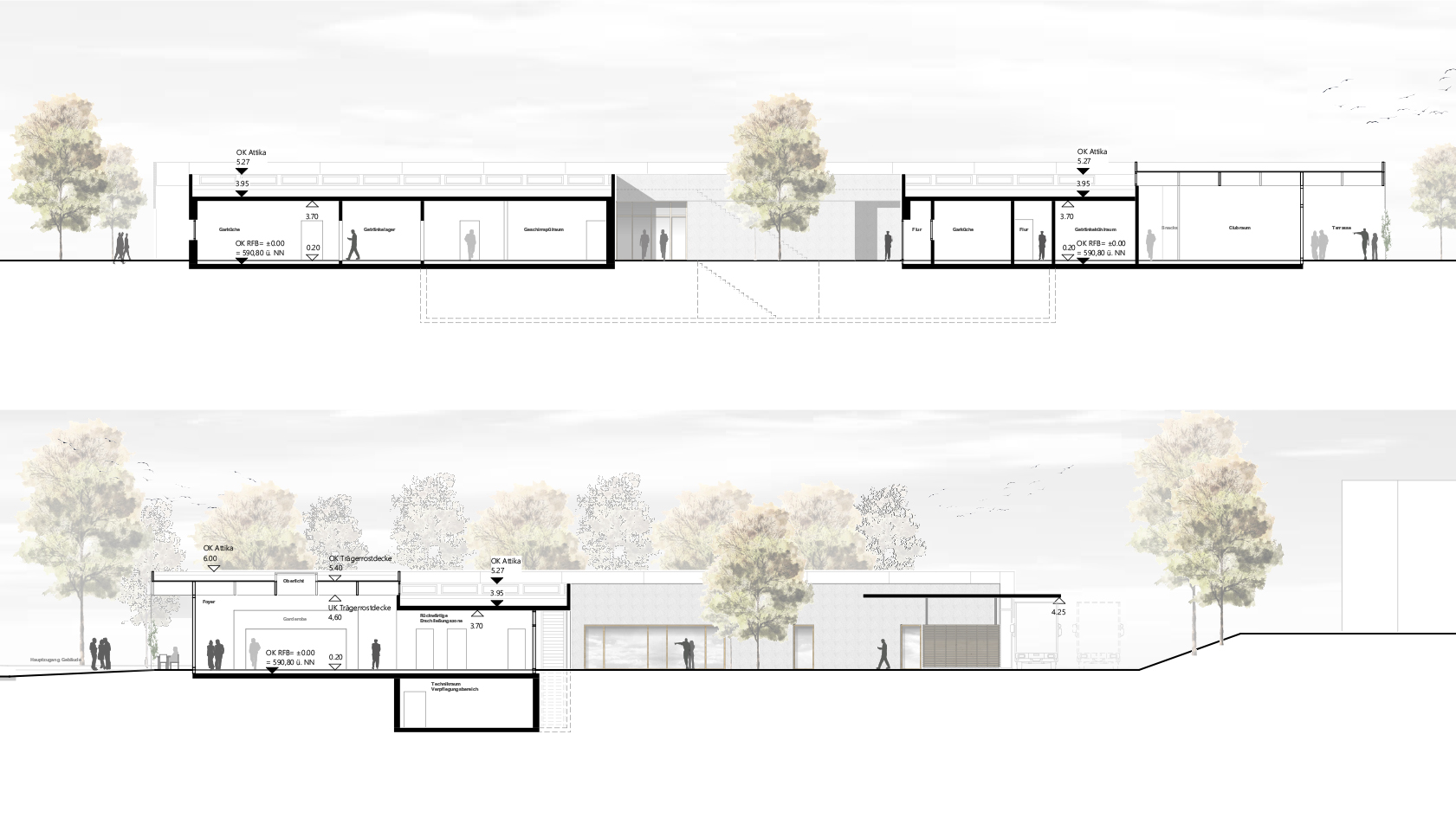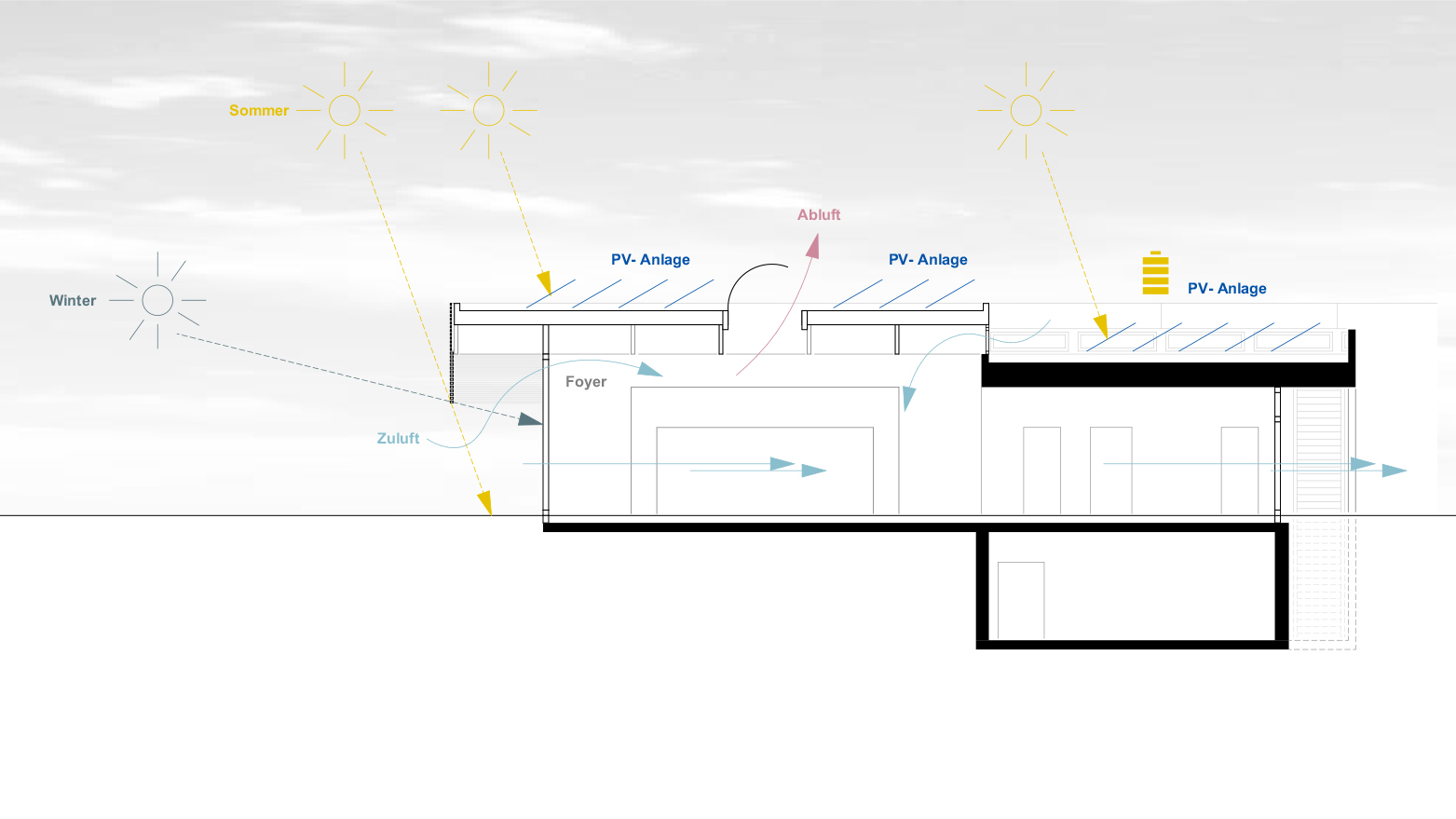 die dächer beider baukörper werden extensiv begrünt und mit photovoltaikmodulen versehen.