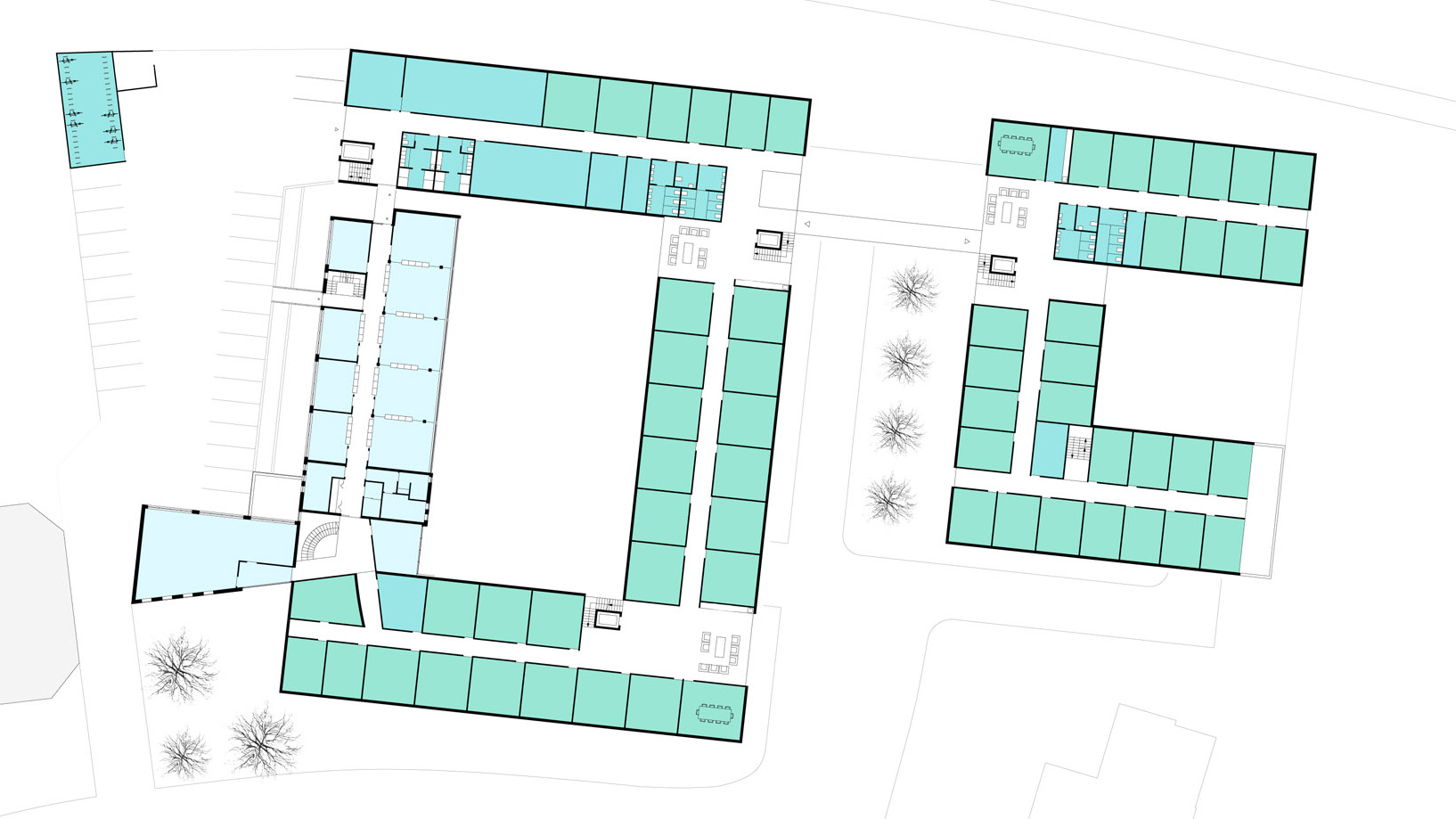 das bürogebäude wird als diffusionsoffener holzbau konzeptiert. wobei ein hoher vorfertigungsgrad fokussiert wird. der nachhaltige und natürliche baustoff schont die umwelt durch einen geringen notwendigen primärenergieeinsatz und schafft ein qualitativ hochwertiges arbeitklima. zudem lässt sich die bauphase durch holz und den einhergehenden hohen vorfertigungsgrad von wänden und decken wie bei keinem anderen material extrem verkürzen.