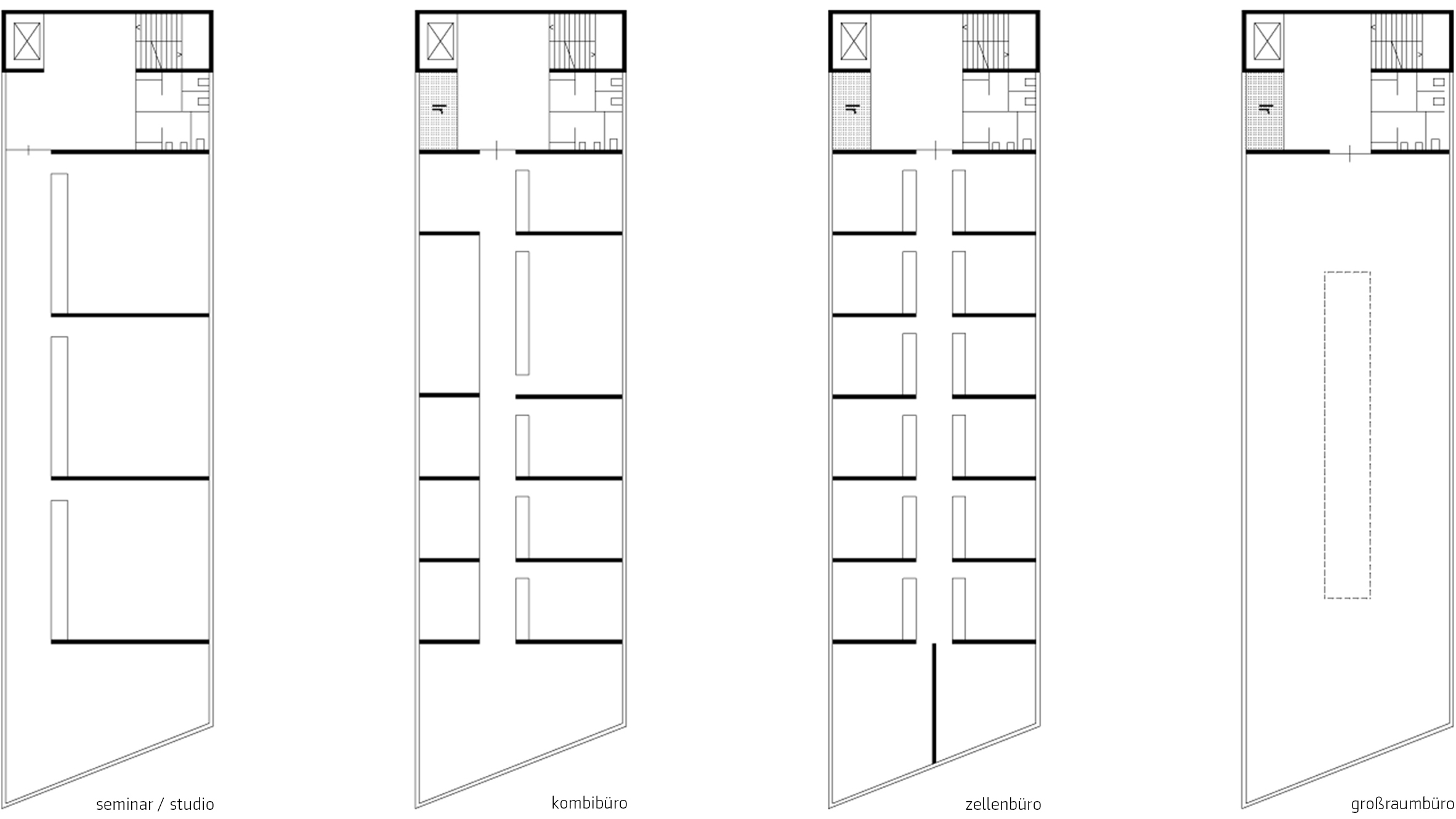 in fortführung der vorhandenen zeilenbebauung bildet der entwurf einen neuen städtebaulichen auftakt für die obere donaubastion. dabei wird der stadteingang durch ein viergeschossiges gebäudevolumen markiert, das einen neuen zugang zum areal definiert und gleichzeitig einen offene abschluss bildet. die nutzungsneutralen, flexiblen grundrisse des gebäudes schaffen mit einem kompakten kernbereich, foyerbereichen, vorzonen und lufträumen eine große innenräumliche qualität. die hauptnutzflächen sind zur angrenzenden donau ausgerichtet und ermöglichen ausblicke auf das ulmer münster. im erdgeschoss stehen nutzungsneutrale freiflächen als externe mietflächen zur verfügung.