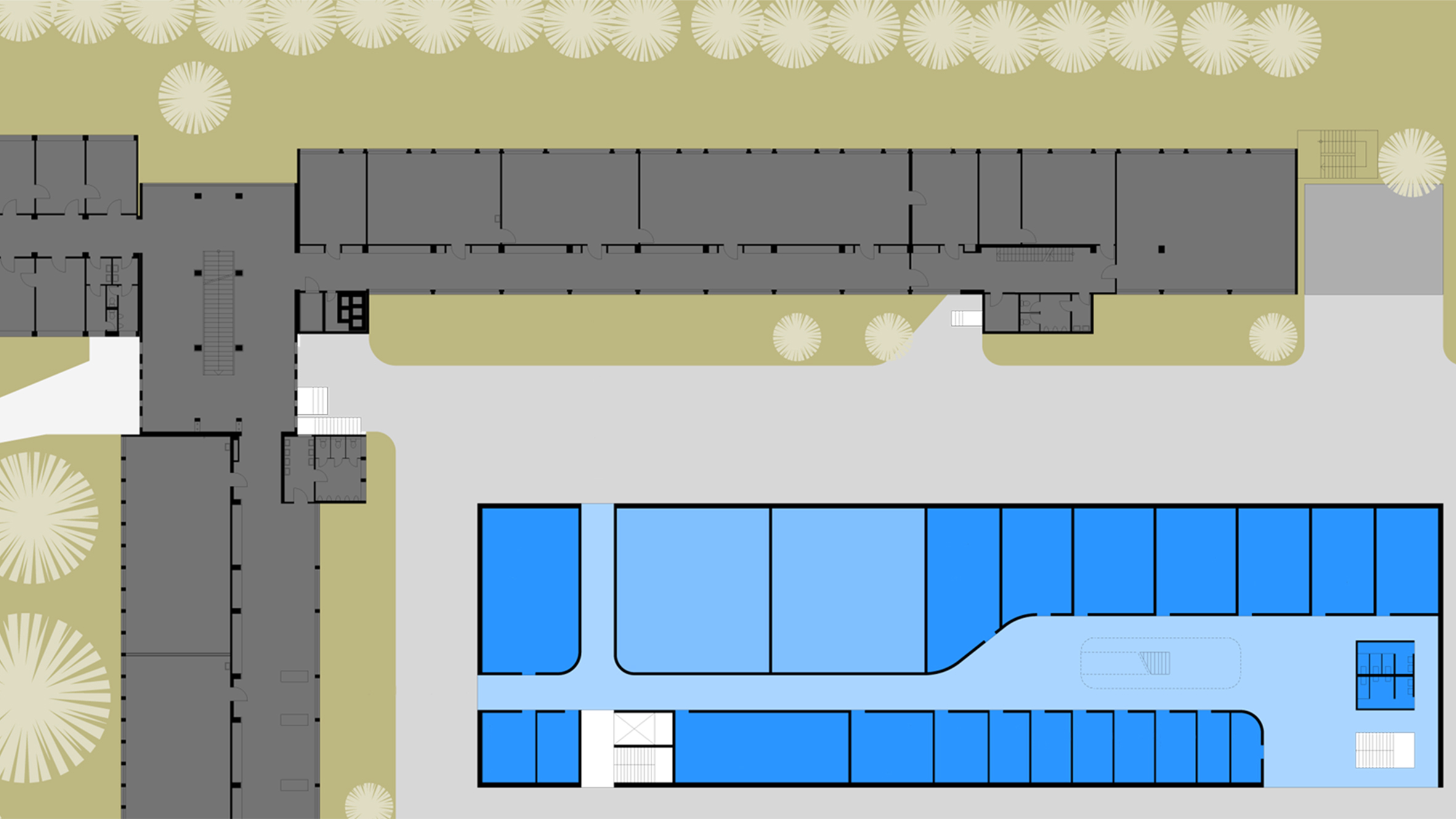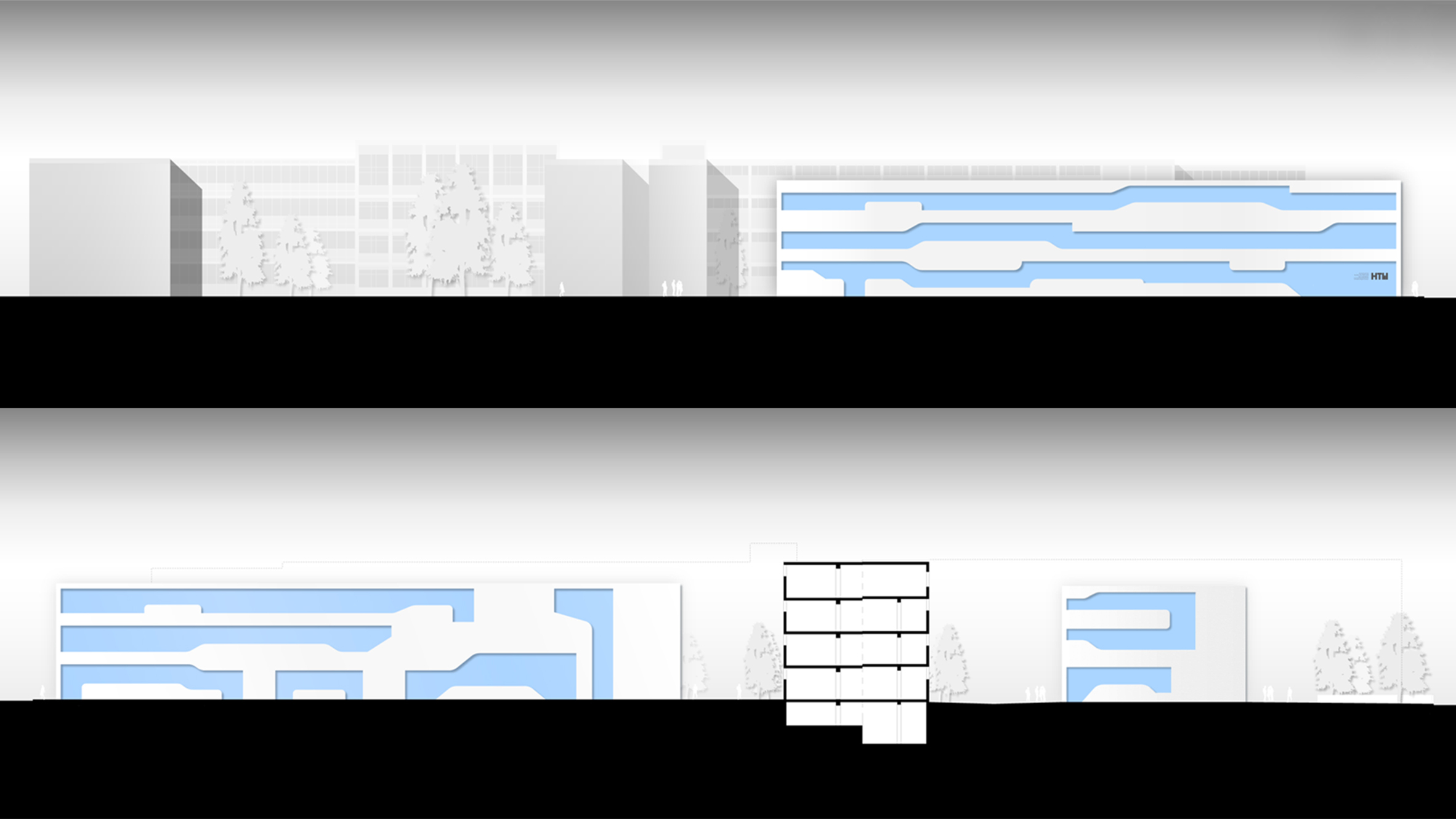 das städtebauliche konzept wird von der überzeugung geleitet, dass der neubau des technikums einen markanten auftakt für die ost-west-magistrale des gesamten hochschulareals der hochschule für technik und wirtschaft bilden muss. aus diesem grund ist das gebäude als lang gestreckter riegel konzipiert, der den zugang von osten definiert. der dreigeschossige baukörper fügt sich massstäblich in das gesamtensemble ein und bildet einen räumlichen abschluss zur südlich angrenzenden wohnbebauung. die metallische, stromlinienförmige anmutung der fassade erzeugt durch ihre symbolkraft eine identität stiftende rolle für das gesamte campusgelände und entspricht der nutzung des gebäudes als technikum für die ingenieurwissenschaften. die fassadenbewegungen folgen dabei den raumspezifischen nutzungen der raumhöhe. das aussenanlagenkonzept wird geleitet von der notwendigkeit, die aufenthaltsqualität auf dem campus der hochschule entscheidend zu verbessern und die verbindung in ost–west-richtung zu stärken. so entsteht im süden ein grosszügiger campusplatz mit dem haupteingang zum technikum. der kompakte baukörper pflegt einen sparsamen umgang mit grund und boden und ist in verbindung mit einer hochwärmegedämmten gebäudehülle und effizienten anlagetechnik energetisch überaus sinnvoll.