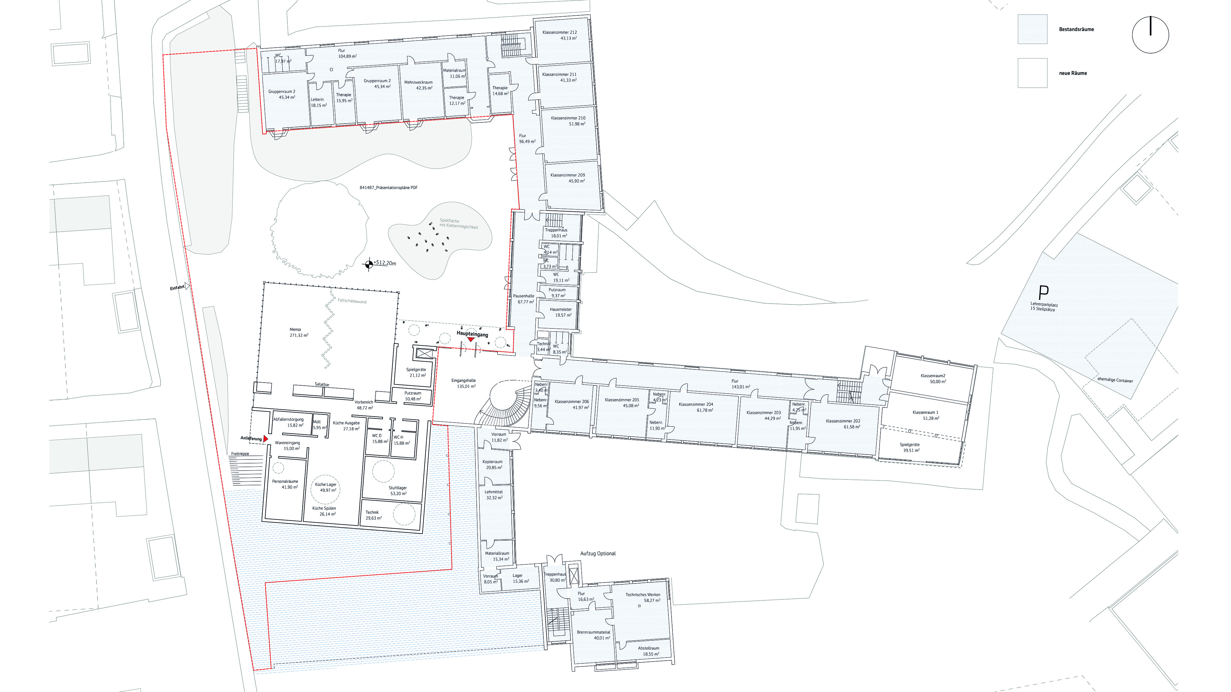 lehrerparkplatz wird auf aktuelle containerstellfläche verlegt und vergrößert