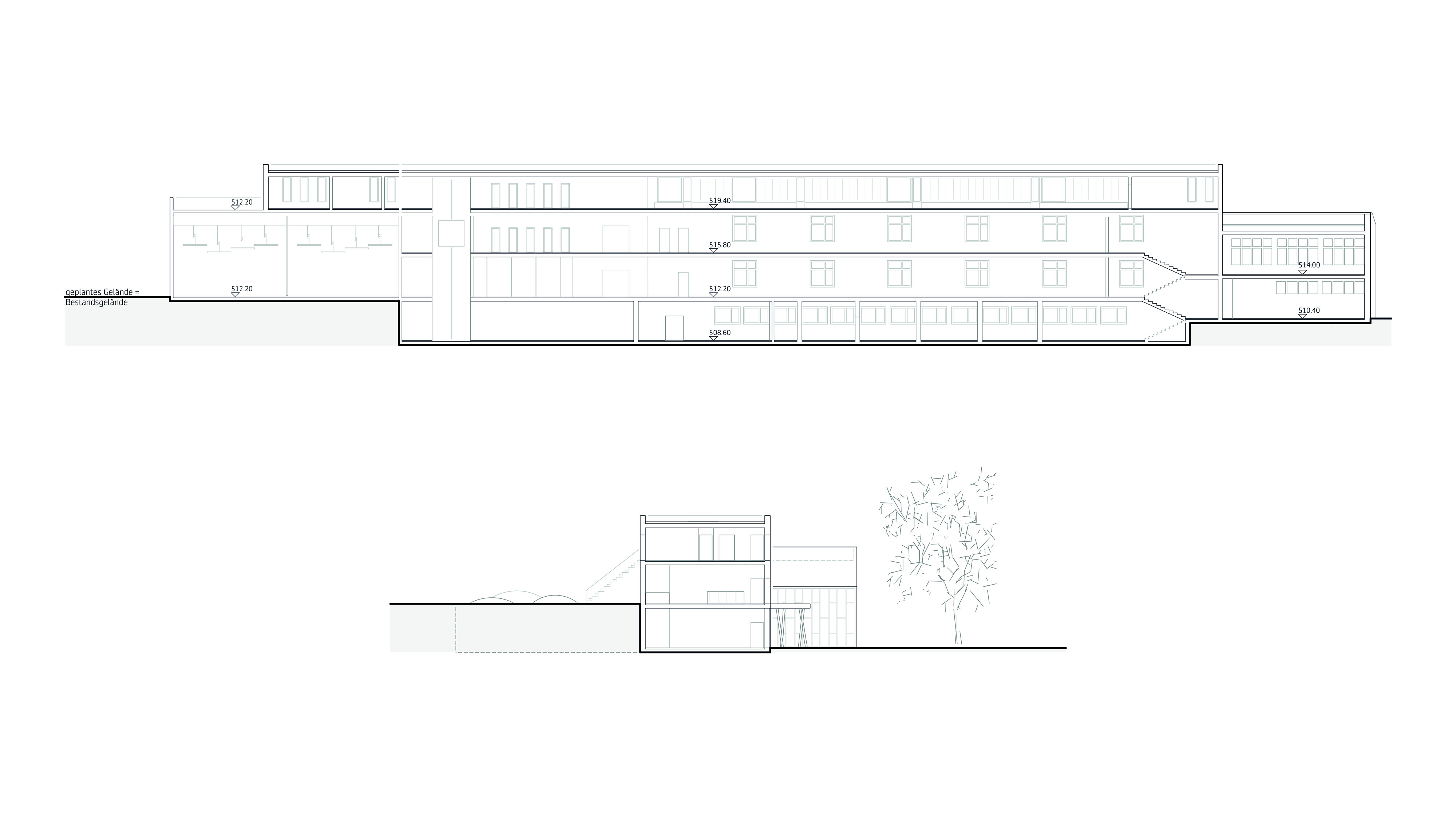höhen der baukörper fallen mit der topographie