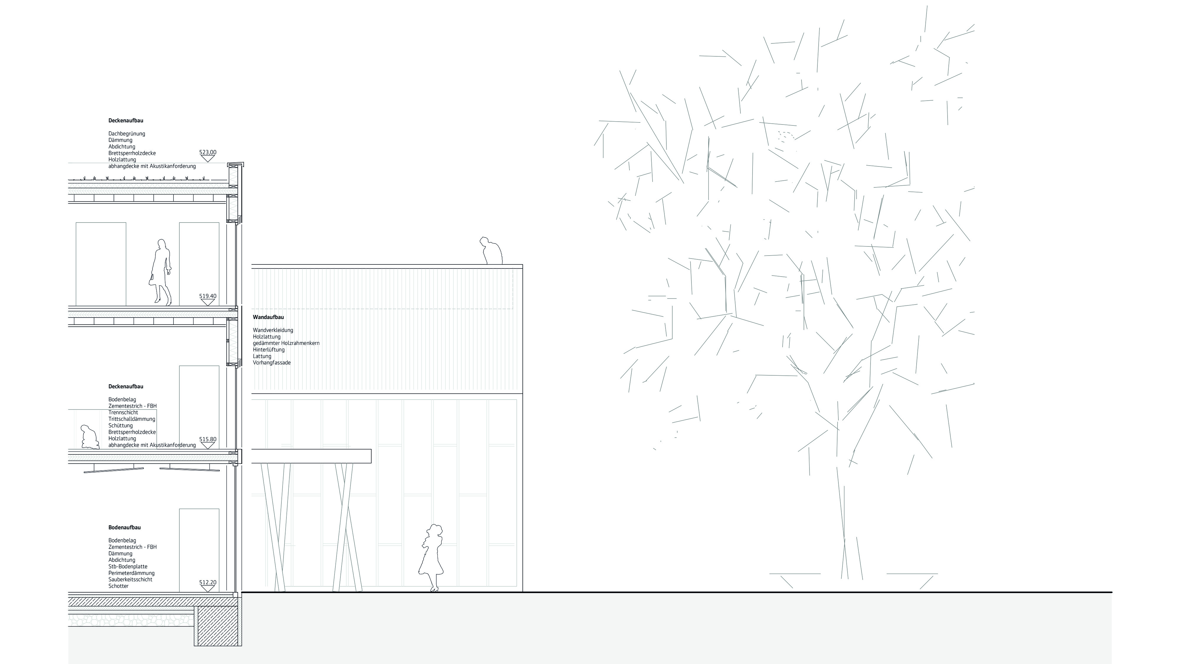 ein kopfbau schließt am mittleren gebäudestrang an