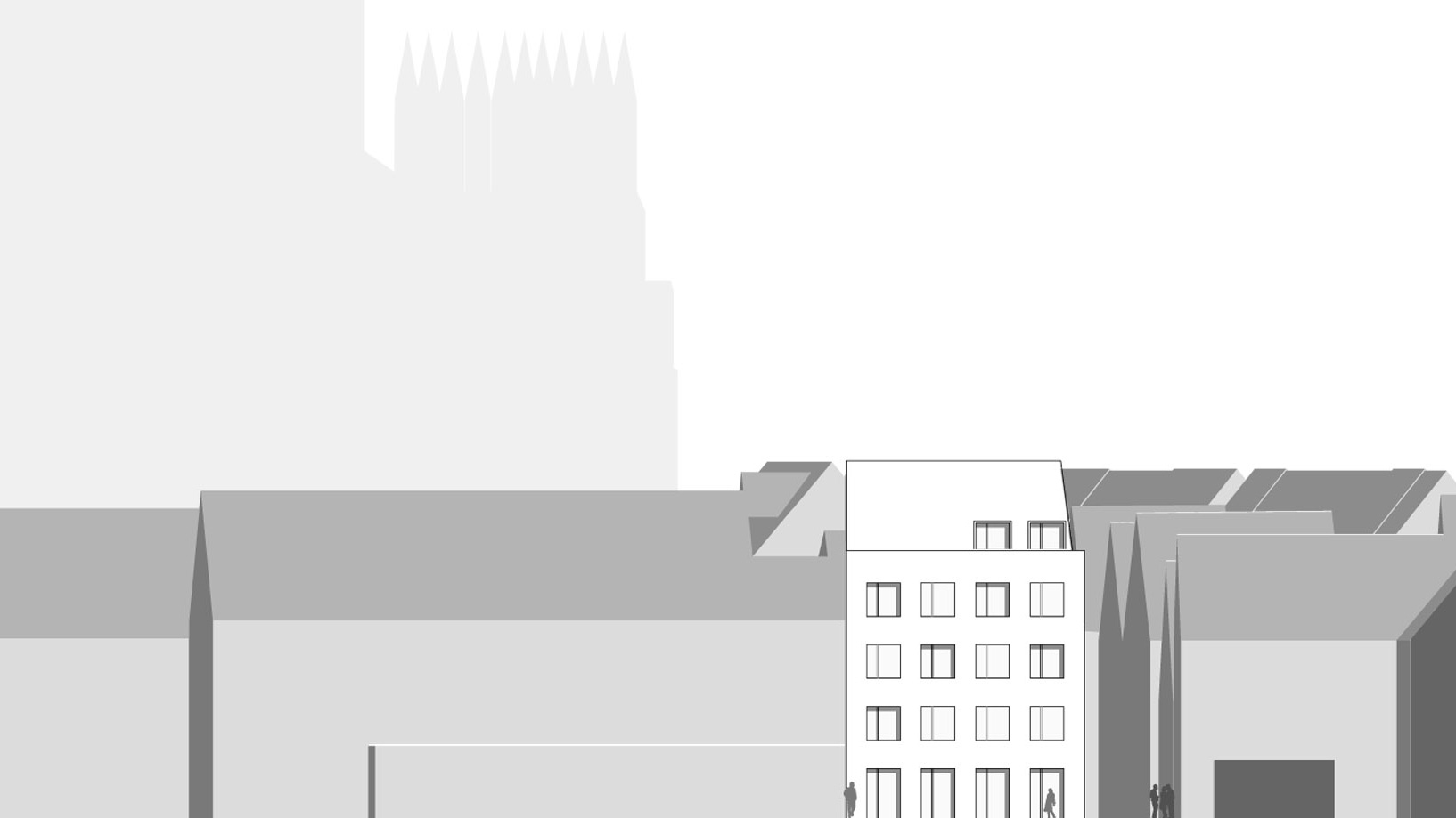 an der nordöstlichen ecke des baublocks zwischen judenhof und karpfengasse befindet sich im moment eine freifläche, die als parkplatz genutzt wird, historisch aber stets bebaut war. um an dieser stelle ein weiteres stück stadtreperatur zu leisten, hat die stadt ulm ein bewerbungsverfahren um dieses unter 100m² große grundstück ausgelobt. die hochstrasser.architekten konnten dieses verfahren für sich und ihr neues stadthaus entscheiden.