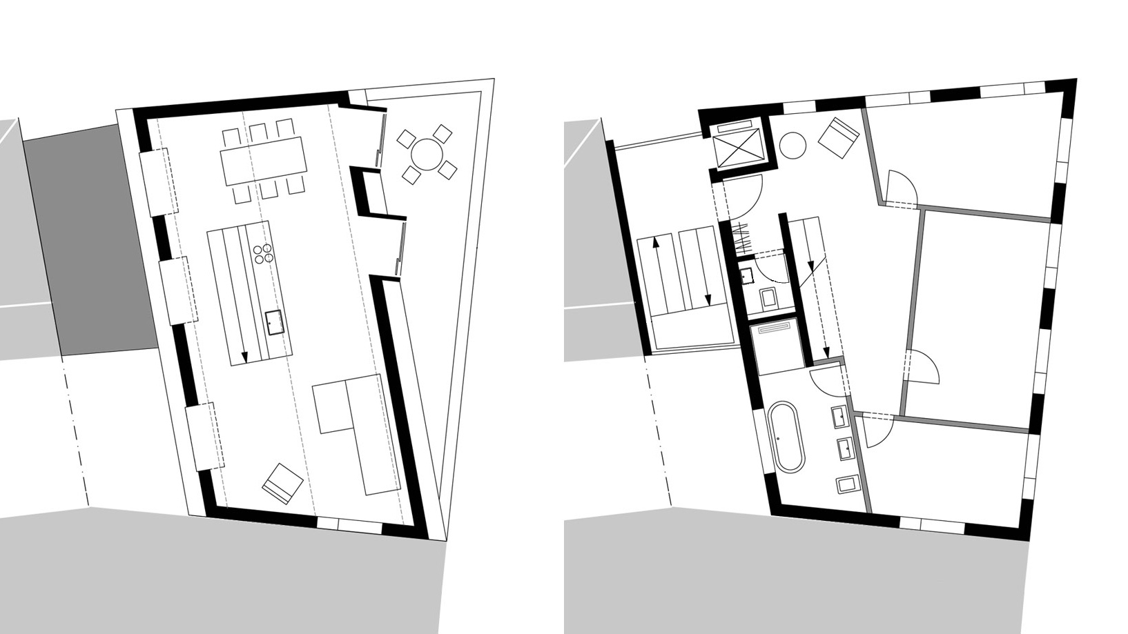 das mittelalterliche fachwerkhaus als holz-massivhaus wird neu interpretiert, es entsteht ein sichtbetonmonolith, gebaut als holzbetonverbundkonstruktion, einem konstruktionsprinzip aus dem brückenbau. das starke bild des monolithischen hauses gibt der rückseite neue kraft.