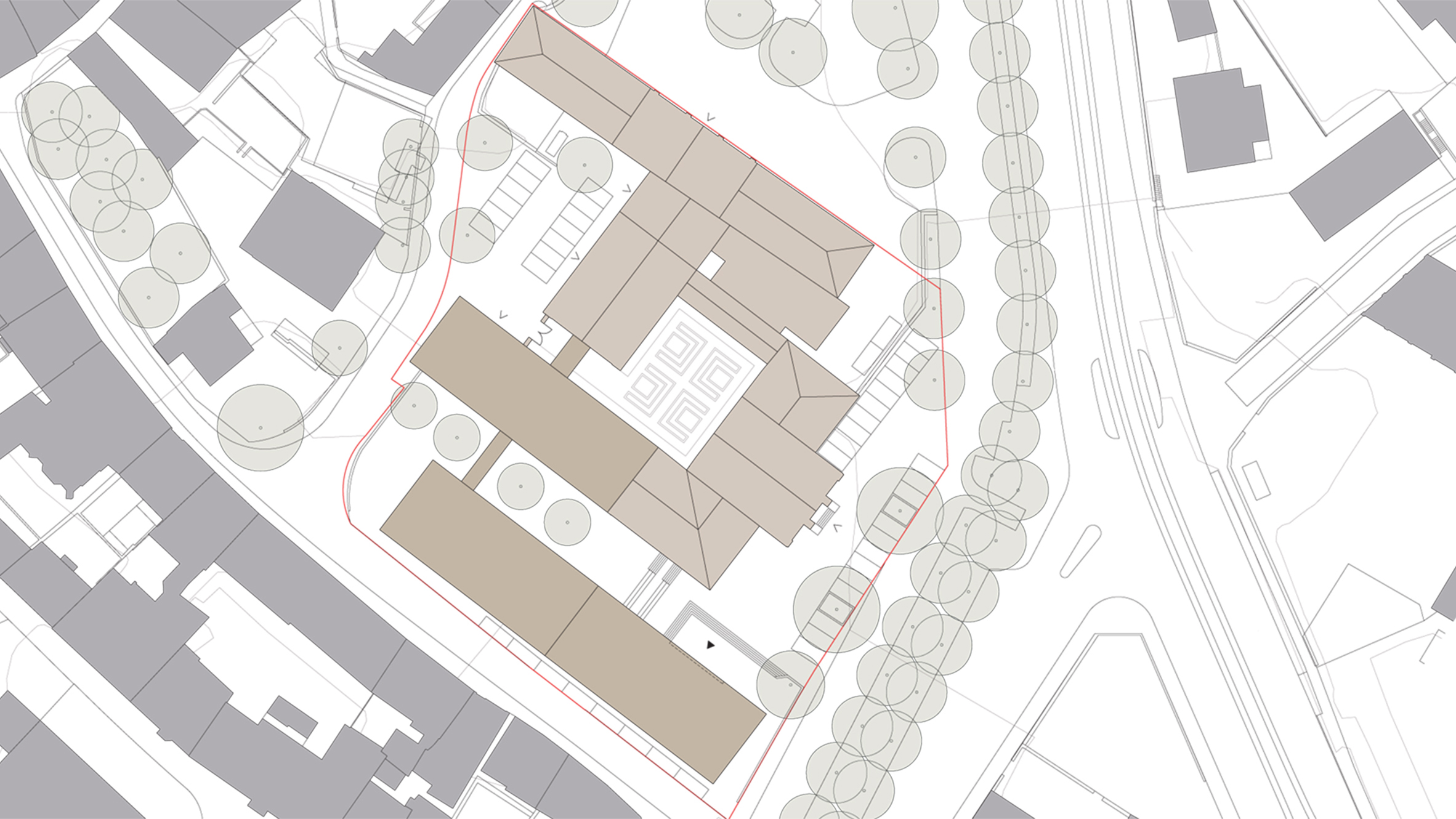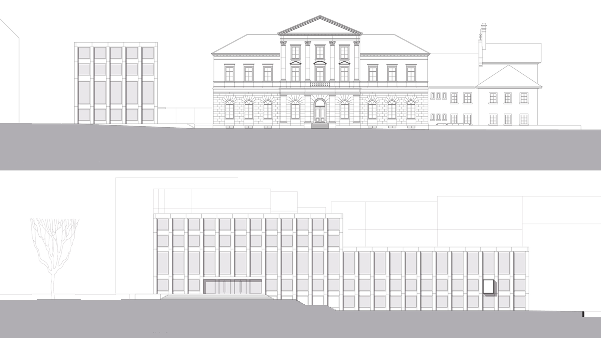 die vorgeschlagene erweiterung des obergerichts interpretiert die städtebauliche situation am hirschengraben zwischen der geschlossenen blockrandbebauung der altstadt zürichs und dem offenen, promenadenartigen charakter des hirschengrabens in doppelter weise. einerseits passen sich die erweiterungen an den vorhandenen städtebaulichen maßstab der umgebung an, andererseits stärkt das neue ensemble den eindruck eines eigenständigen, freistehenden, öffentlichen gebäudekomplexes an der nahtstelle zwischen mittelalterlicher kernstadt und neuzeitlicher stadterweiterung. die hohe durchlässigkeit, die vernetzungen und die zahlreichen blickbeziehungen des angrenzenden altstadtquartiers werden fortgeführt und die erweiterungen behutsam in die historisch gewachsene situation und die hanglage eingefügt.