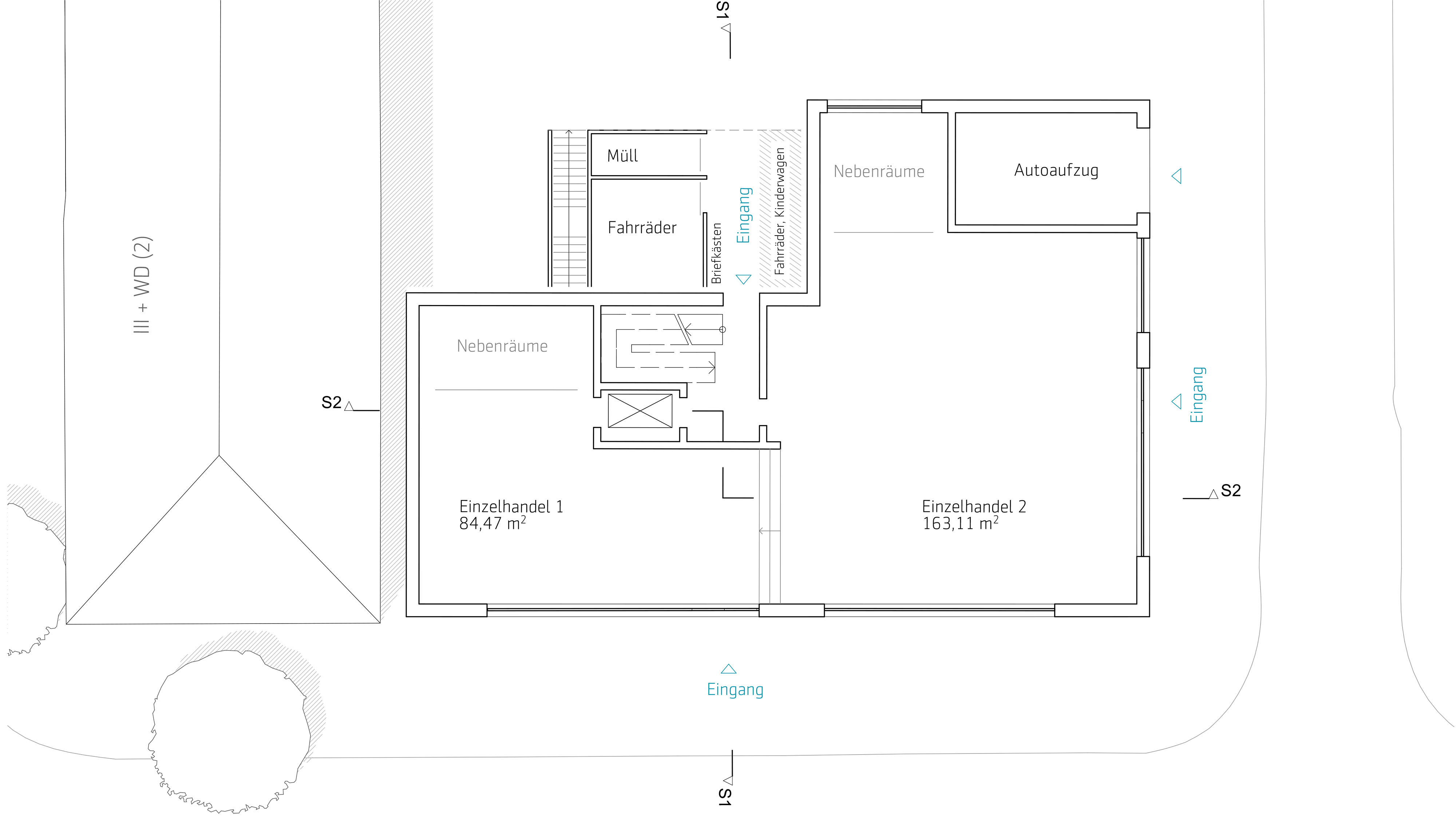 ausbildung einer markanten erdgeschosszone mit großen schaufensterflächen