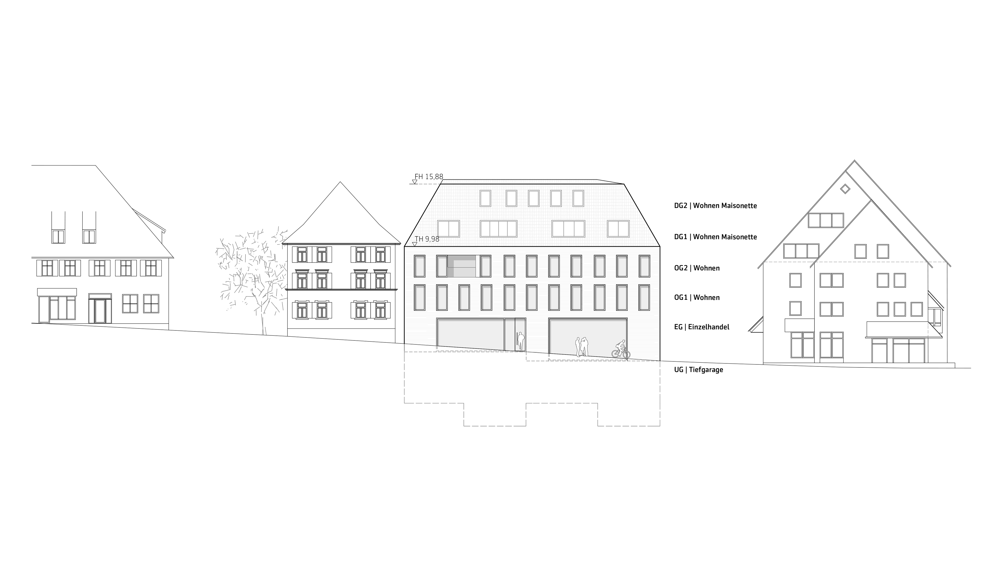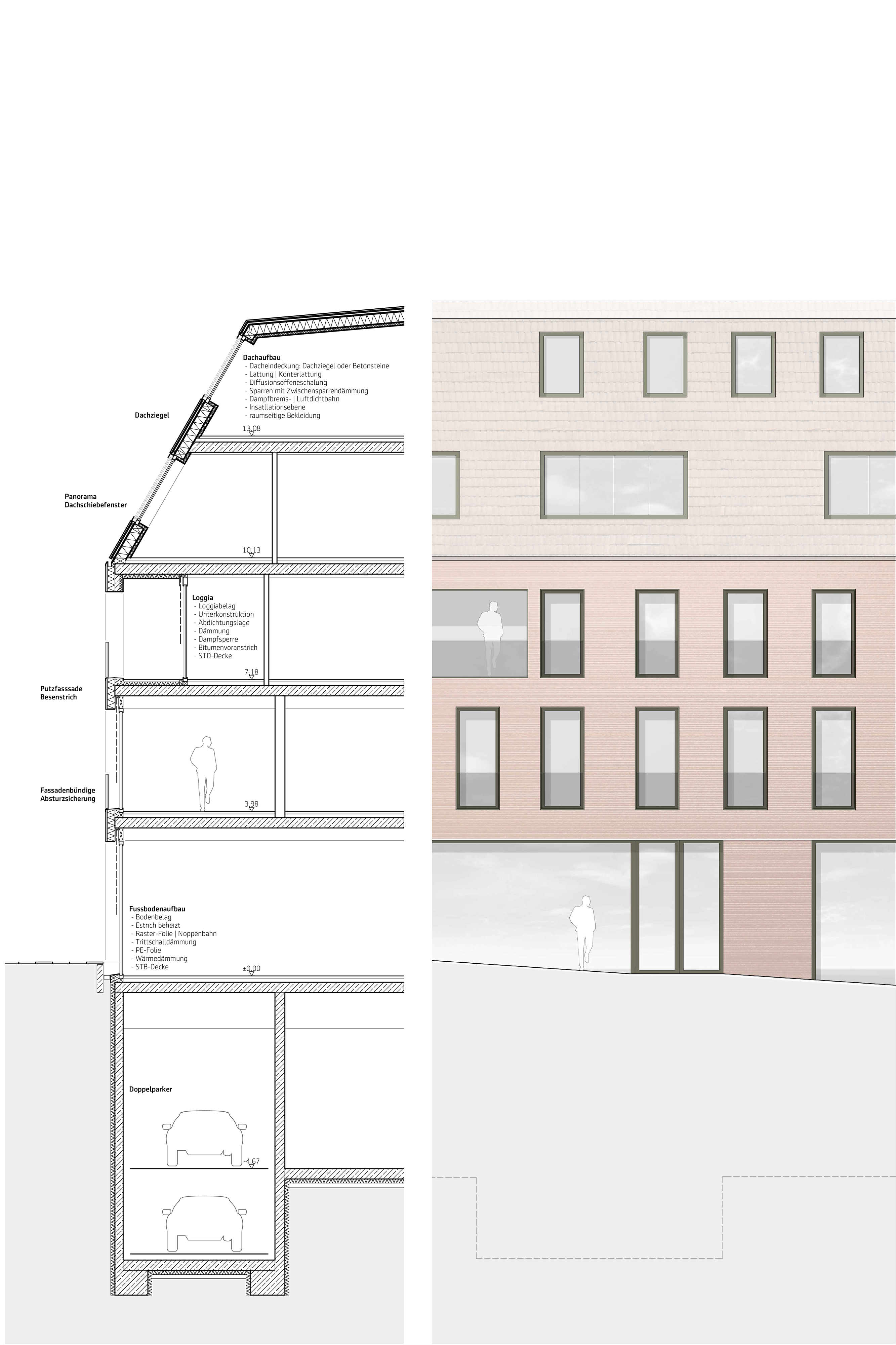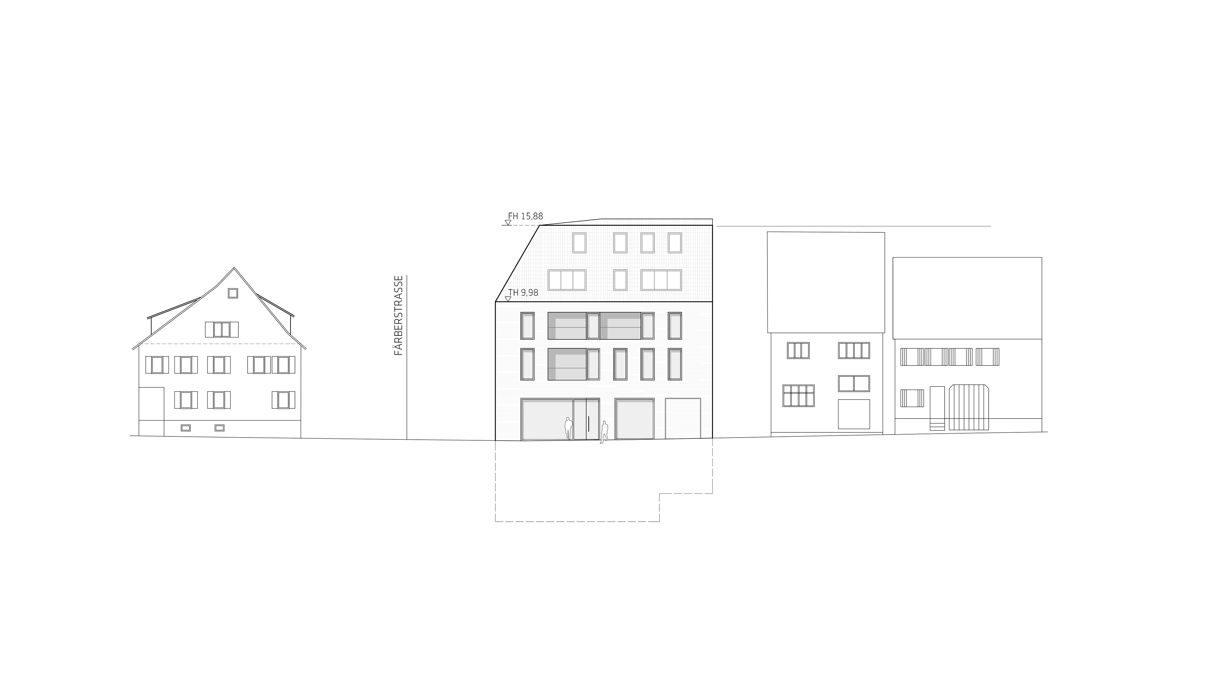straßenseitige firstkante nach unten versetzt, anlehnung an nachbardächer