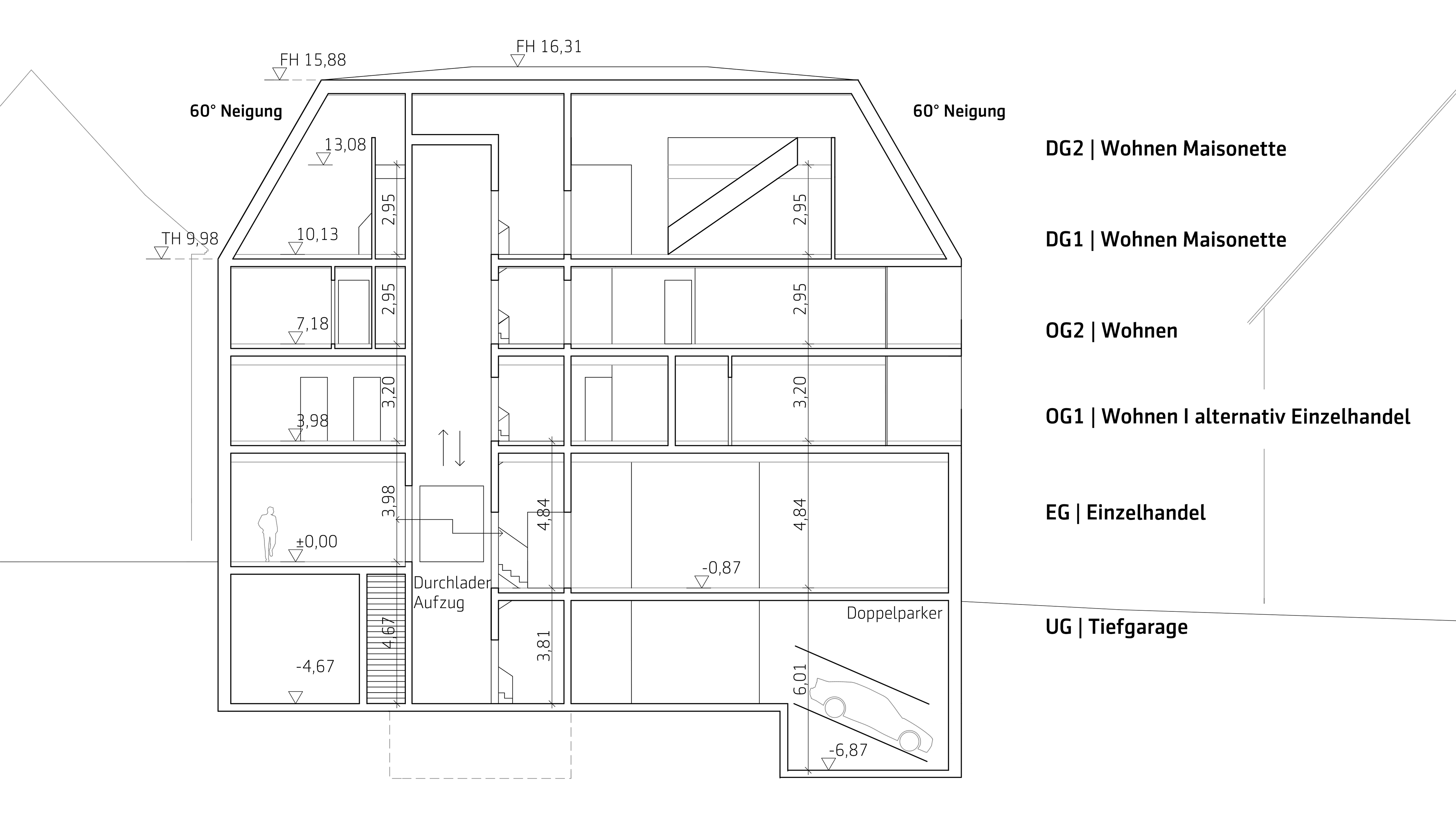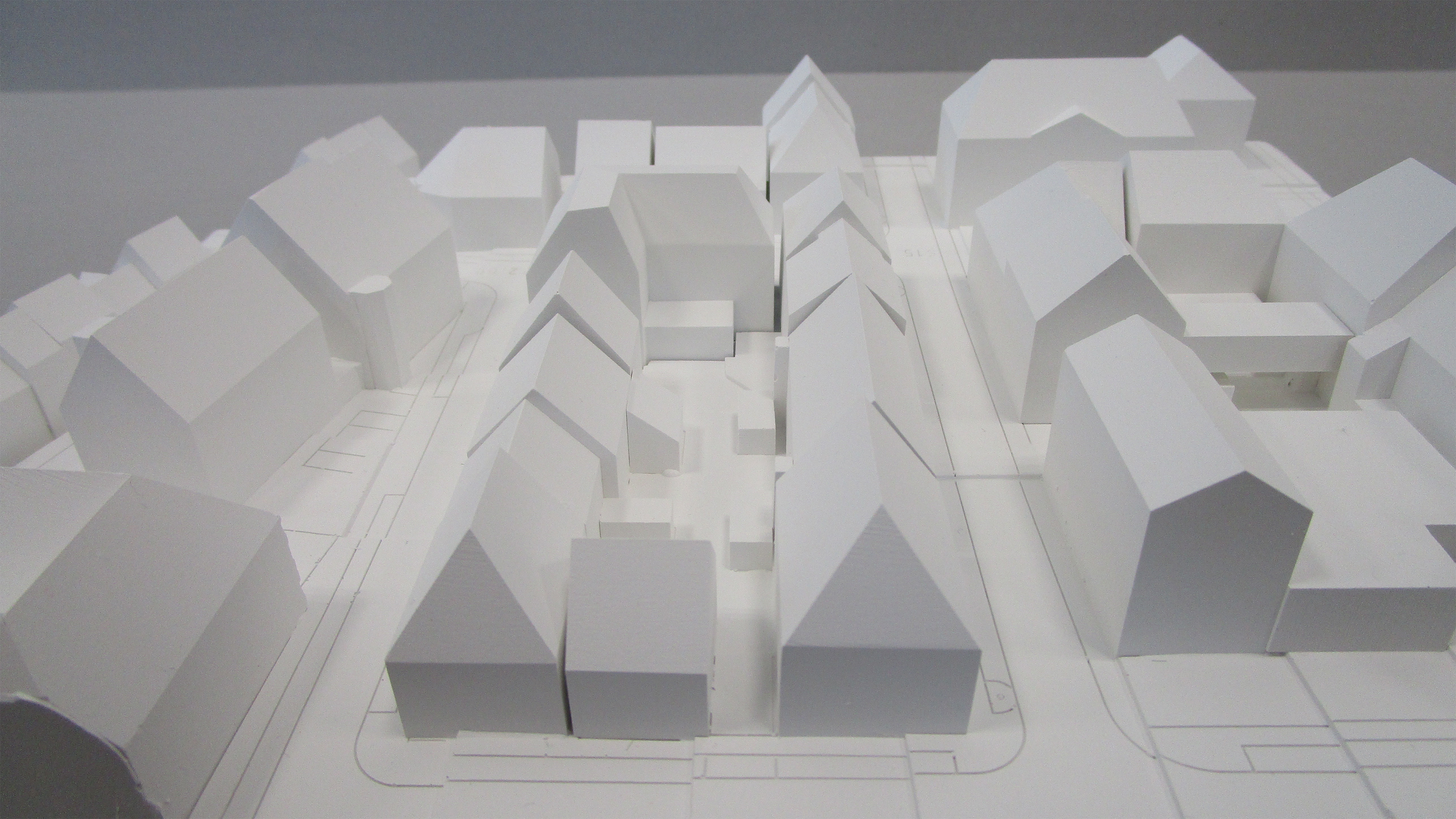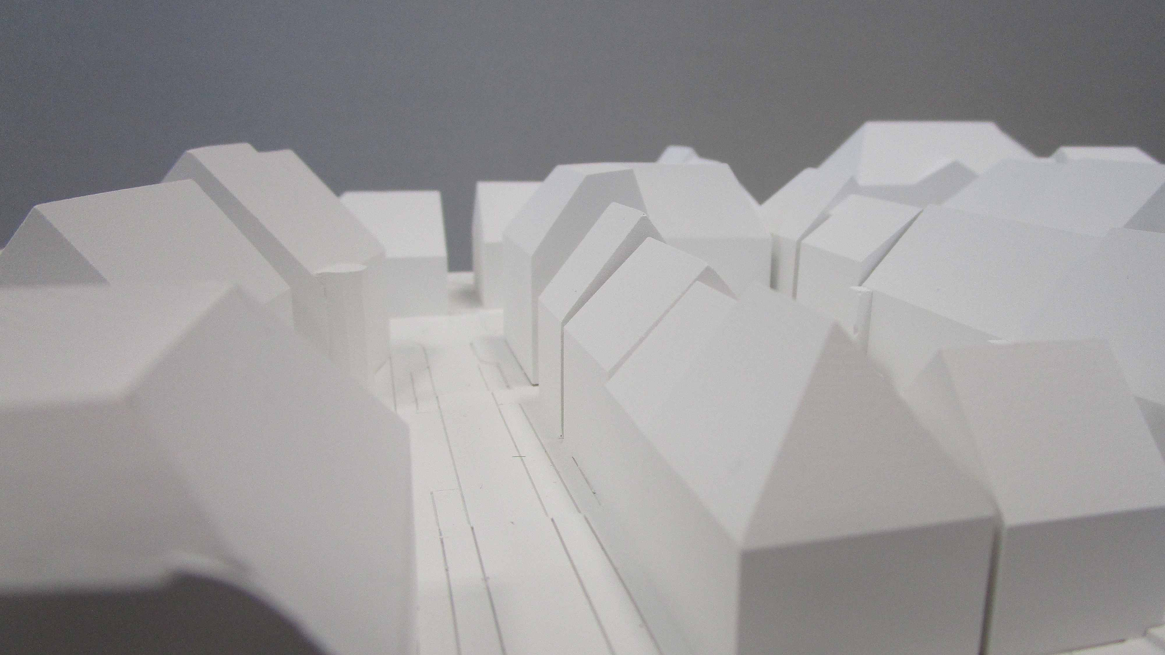 straßenseitige firstkante nach unten versetzt, anlehnung an nachbardächer